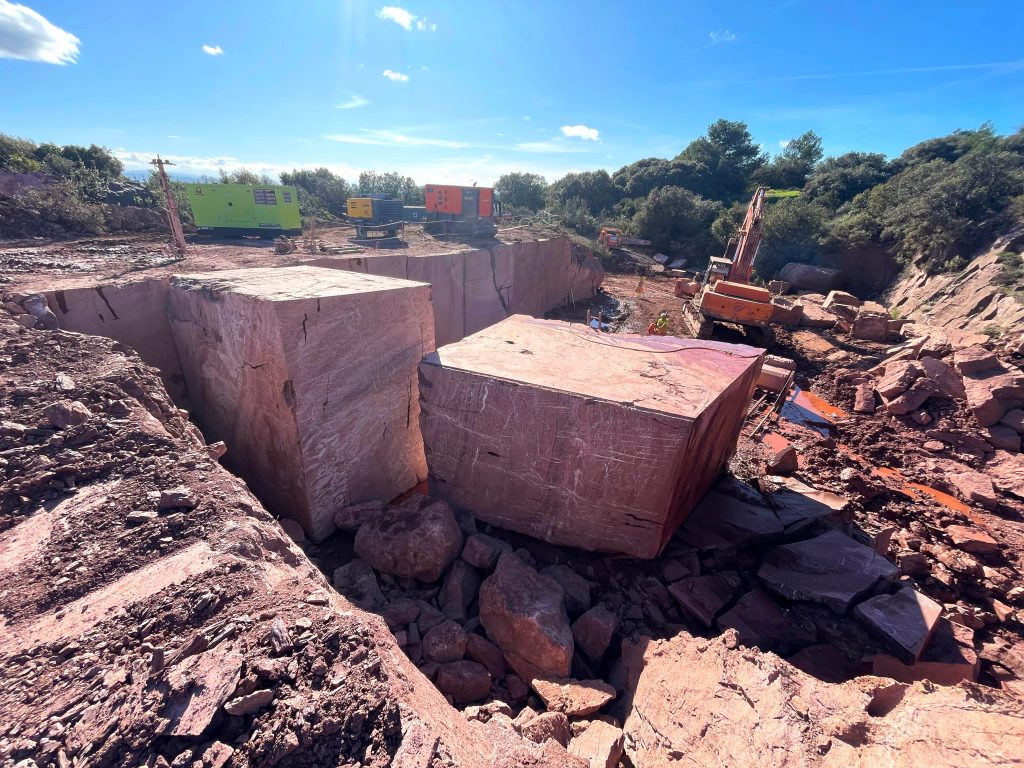Rouge de Roi Marble quarries, in southern France, are located in a magnificent hilly landscape of red limestone rocks. This deep red marble was formed from marine sediments rich in iron oxides, which give it its vibrant color.
