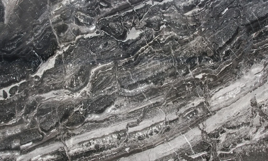 Belvedere quartzite is an African stone of extraordinary value that enchants with its deep black background and golden, white, and grey veins, creating a spectacular and refined effect.