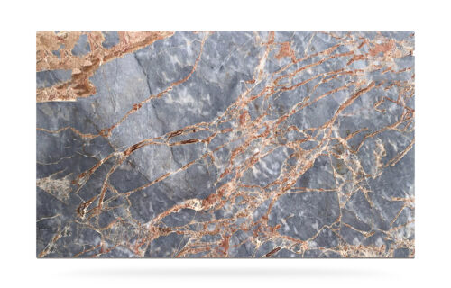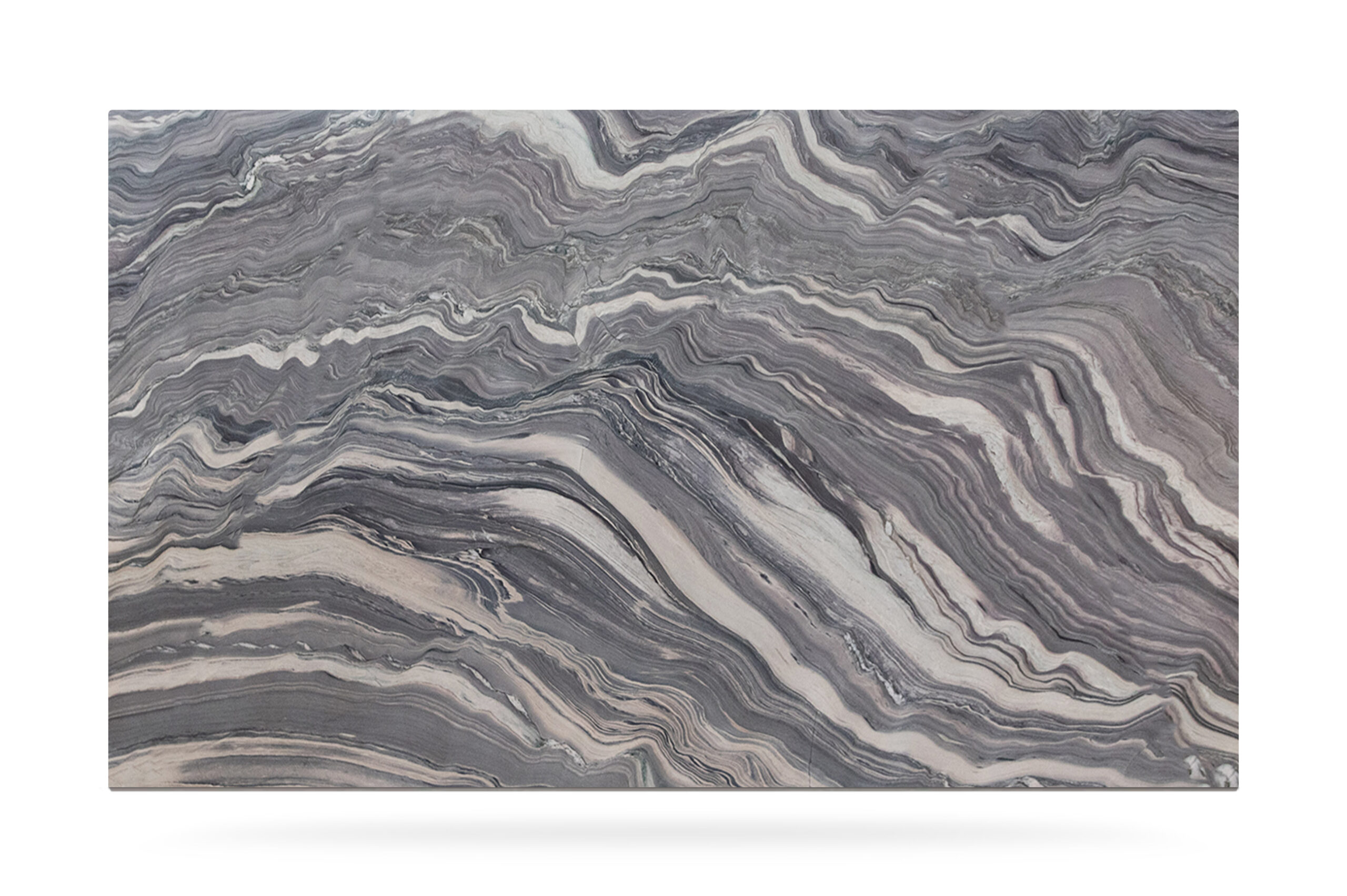 Brazilian quartzite with an exotic look, characterized by blue, gray and white veins that alternate irregularly across the entire surface of the slabs. This metamorphic rock with a medium grain and compact structure is used for the creation of interior floors, wall coverings, kitchen and bathroom countertops. Also used in the furnishing of outdoor spaces, it is able to withstand sudden changes in temperature and foot traffic.