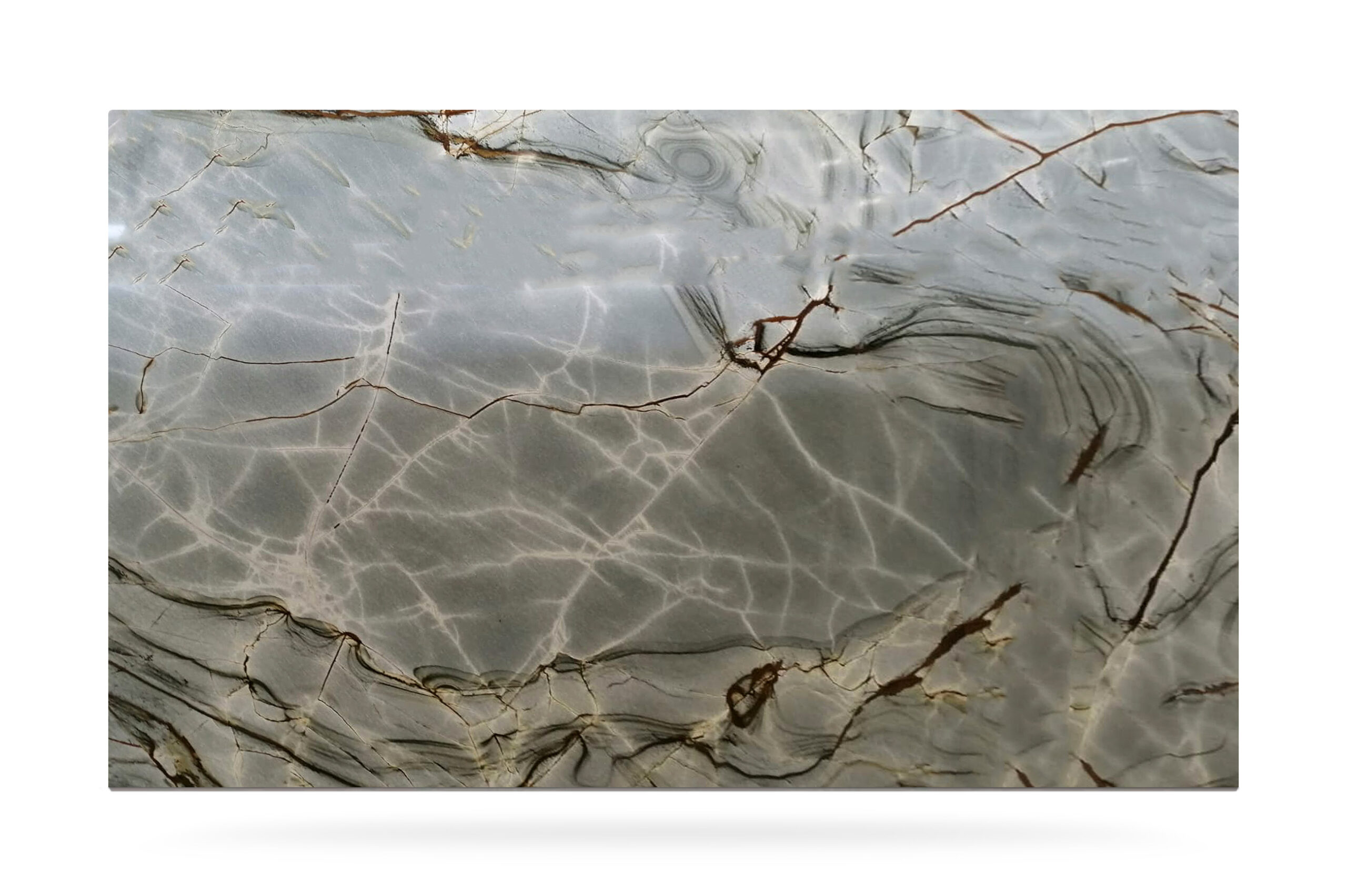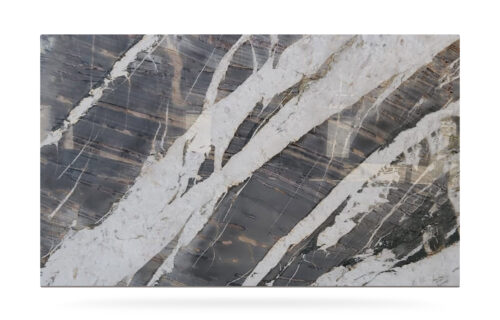 Brazilian quartzite with a natural blue background tending towards gray embellished with irregular orange veins. Resistant to scratches and trampling, Deep Blue is a material sought after by industry experts for the creation of floors, wall coverings and kitchen shelves. Its harmonious colors are in fact in contrast with the copper veins that seem to strike the slabs, giving character to every type of creation.