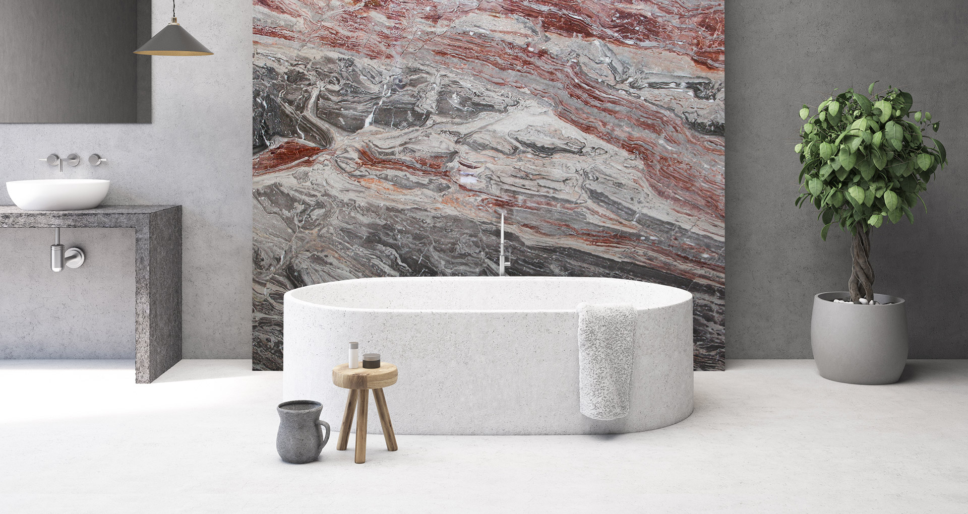 Historic red veined marble, coming from the quarry located in Val Brembana, which we have owned for generations. The color of this very particular marble can vary from red, white to light grey. The particular veining together with the color of this marble allows for open stain constructions that create splendid choreographies. The red orobico arabesque is a marble which, due to its brilliance and lucidity, lends itself well to use in interior furnishings (floors, coverings, walls, bathroom tops, kitchen tops, stairs) and is also successfully used in environments external. The orobic arabesque can be presented as raw, sandblasted, brushed sandblasted, only brushed (also called antiqued), brushed, striped and polished.