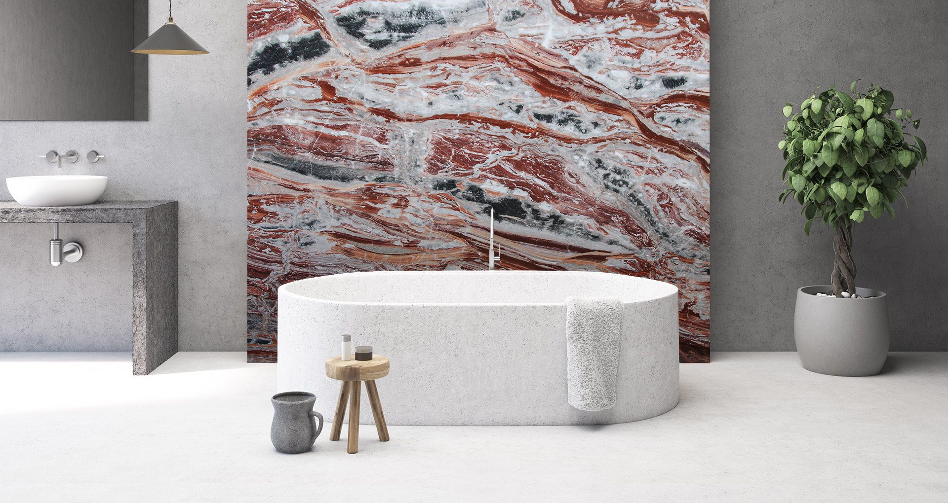 Historic red veined marble, coming from the quarry located in Val Brembana, which we have owned for generations. The color of this very particular marble can vary from red, white to light grey. The particular veining together with the color of this marble allows for open stain constructions that create splendid choreographies. The red orobico arabesque is a marble which, due to its brilliance and lucidity, lends itself well to use in interior furnishings (floors, coverings, walls, bathroom tops, kitchen tops, stairs) and is also successfully used in environments external. The orobic arabesque can be presented as raw, sandblasted, brushed sandblasted, only brushed (also called antiqued), brushed, striped and polished.