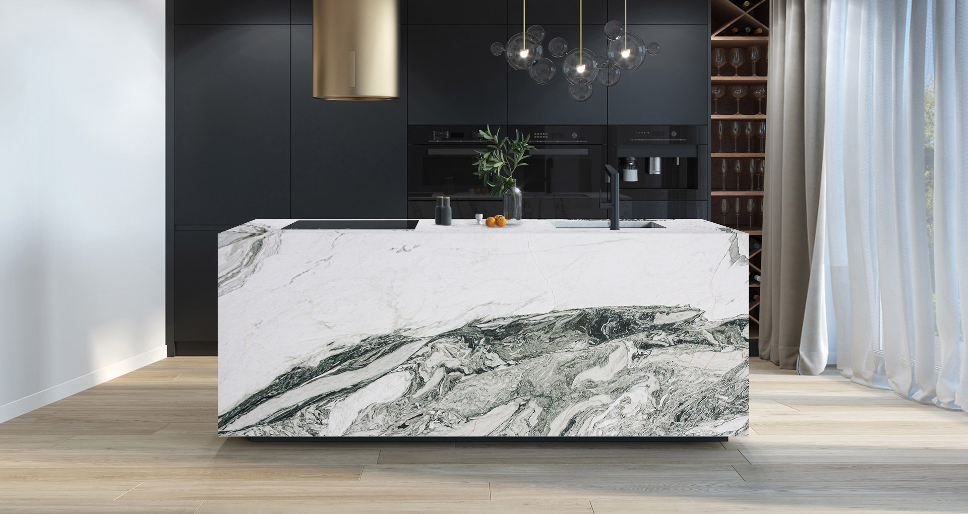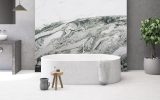 Aragonita is a natural stone belonging to the quartzite family. Its light surface, characterized by a white background, is enhanced by irregular veining and markings in shades of grey and dark green, making each slab unique. Thanks to its high hardness and durability, Aragonita is a versatile and functional choice, ideal for kitchen countertops, flooring, and wall cladding in both residential and commercial spaces.