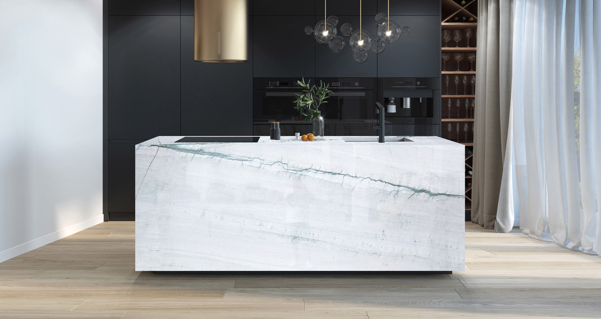 Brazilian quartzite of light gray color characterized by irregular greenish veins. This natural stone consisting mainly of quartz is particularly resistant to abrasion, temperature changes and pollution. Ideal for floors, wall coverings and kitchens, Audacia can also be used for external design projects.