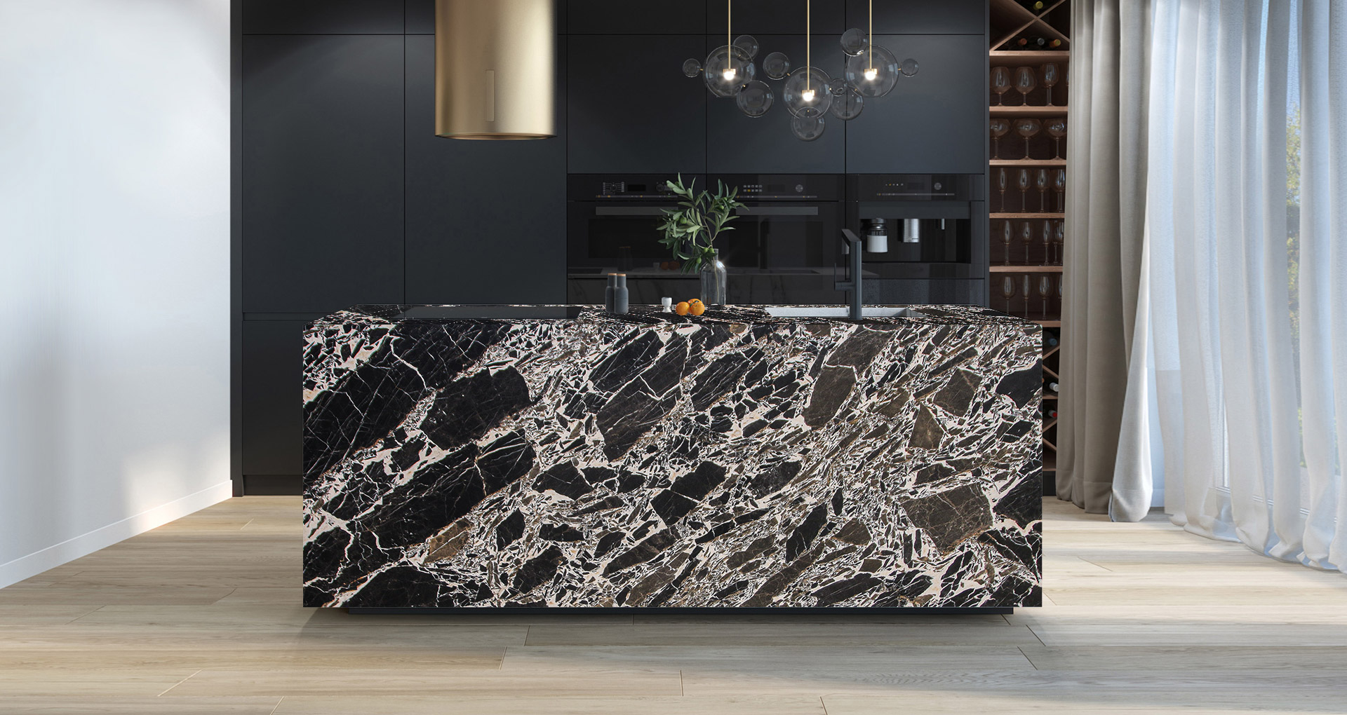 Belle Epoque is a marble of French origin characterized by elegant branching patterns of sharp white veining that intertwine with black and brown oval spots. Intense and mysterious, this natural stone with deep tones brings personality and sophistication to any space. Thanks to its strong aesthetic presence, it is used for flooring and wall cladding, as well as for worktops and striking furnishing elements.