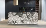 Marble from the Apuan Alps, in the heart of the Tuscany region. The white background that dominates this material is embellished with purple and green veins that cross the slabs, also allowing for the creation of open-book works. Of a refined elegance, Breccia Capraia is a material particularly suitable for use in internal environments thanks also to its technical characteristics. Floors, wall coverings and kitchen tops are just some of the creations that make this material a first choice for designers and professionals in the sector.