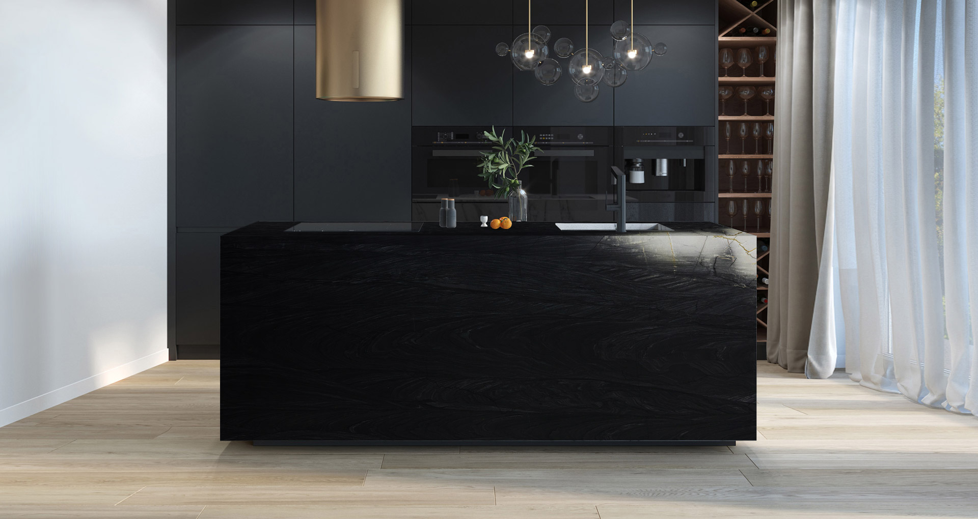 Brillant Black is a Brazilian quartzite shaped by millennia of geological processes, its chromatic matrix dominated by an absolute black—a mineral void that seems to hold the memory of the depths from which it was born. Silvery veins and subtle gradients cross the surface in diagonal trajectories, like fissures of light carving through darkness. Each block displays an unrepeatable pattern, the result of timeless stratifications and metamorphic variations that nature never replicates twice.Thanks to the high concentration of quartz within its crystalline structure, Brillant Black possesses intrinsic resistance to impact, abrasion, and environmental agents. Its low porosity makes it naturally impermeable, ideal for flooring, architectural cladding, and high-performance work surfaces.This is a stone that does more than simply cover spaces: it sculpts them, defines them, and envelops them in a deep, magnetic aesthetic, where matter itself recounts its ancient story with primordial elegance.