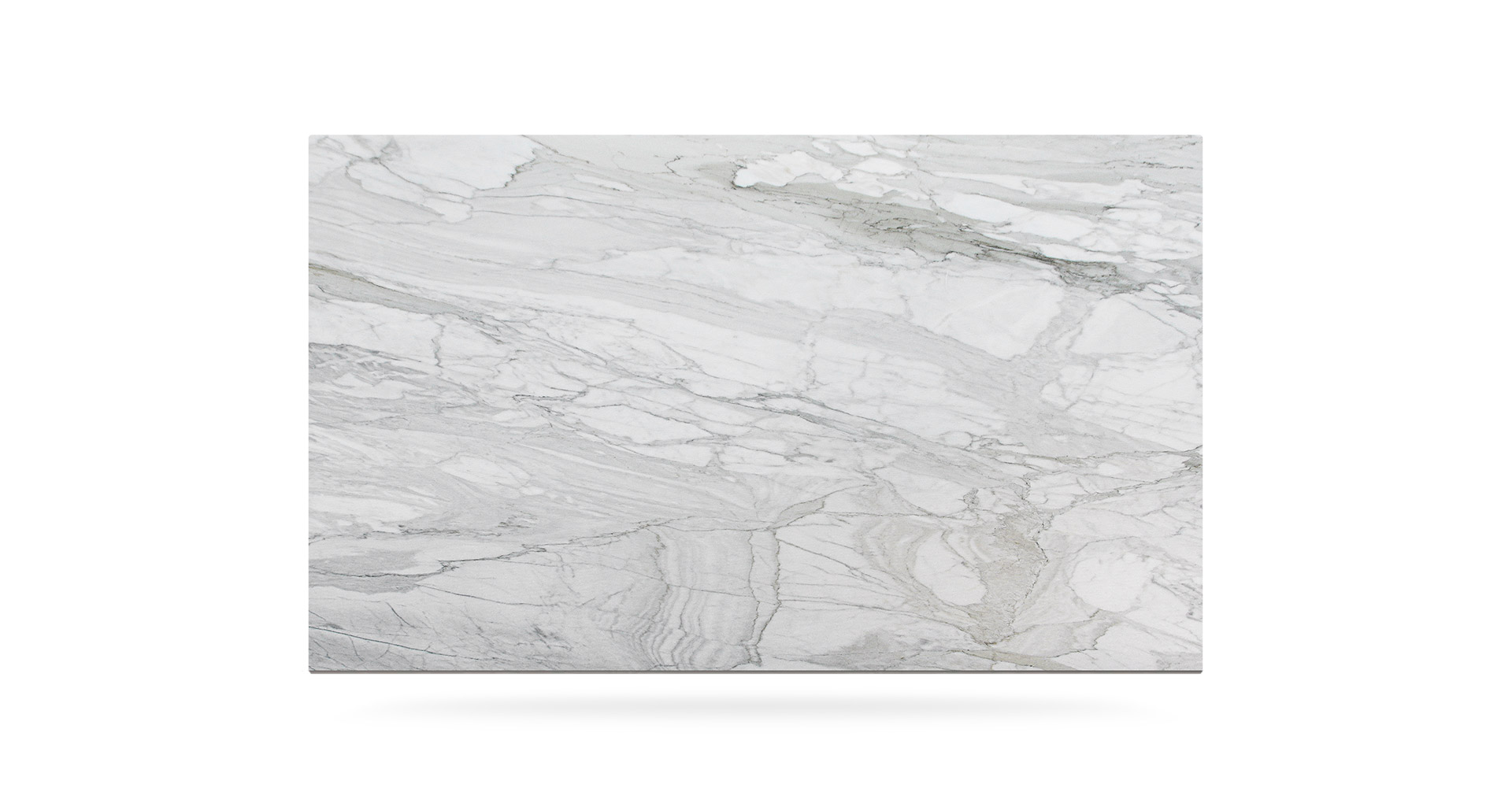 Very precious Italian marble, with a white/cream background and light gray veins that cross the slabs in irregular copper plating. Bright and enveloping, Calacatta Cremo is able to embellish large internal spaces such as floors and kitchen tops, but also external ones, with its elegance. This shining stone is resistant to shocks and temperature changes.