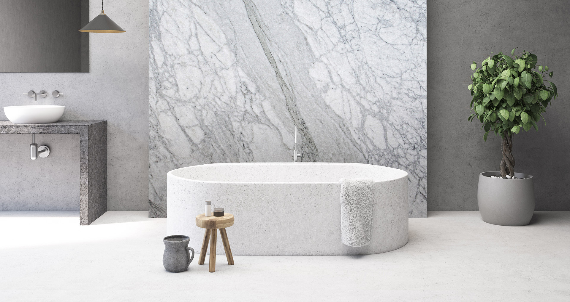 Very precious Italian marble, with a white/cream background and light gray veins that cross the slabs in irregular copper plating. Bright and enveloping, Calacatta Cremo is able to embellish large internal spaces such as floors and kitchen tops, but also external ones, with its elegance. This shining stone is resistant to shocks and temperature changes.