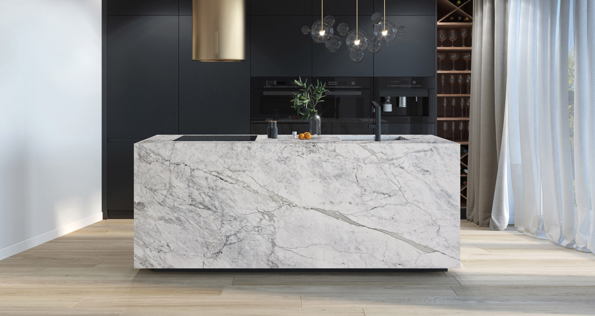 Italian marble extracted in the Apuan Alps, a basin of some of the most important natural stones quarried in our country. Light golden veins cross the white background in irregular branches of various sizes. Thanks to its special brightness, Calacatta Gold is particularly suitable for sculpture and for the creation of internal environments such as atriums, floors and wall coverings.