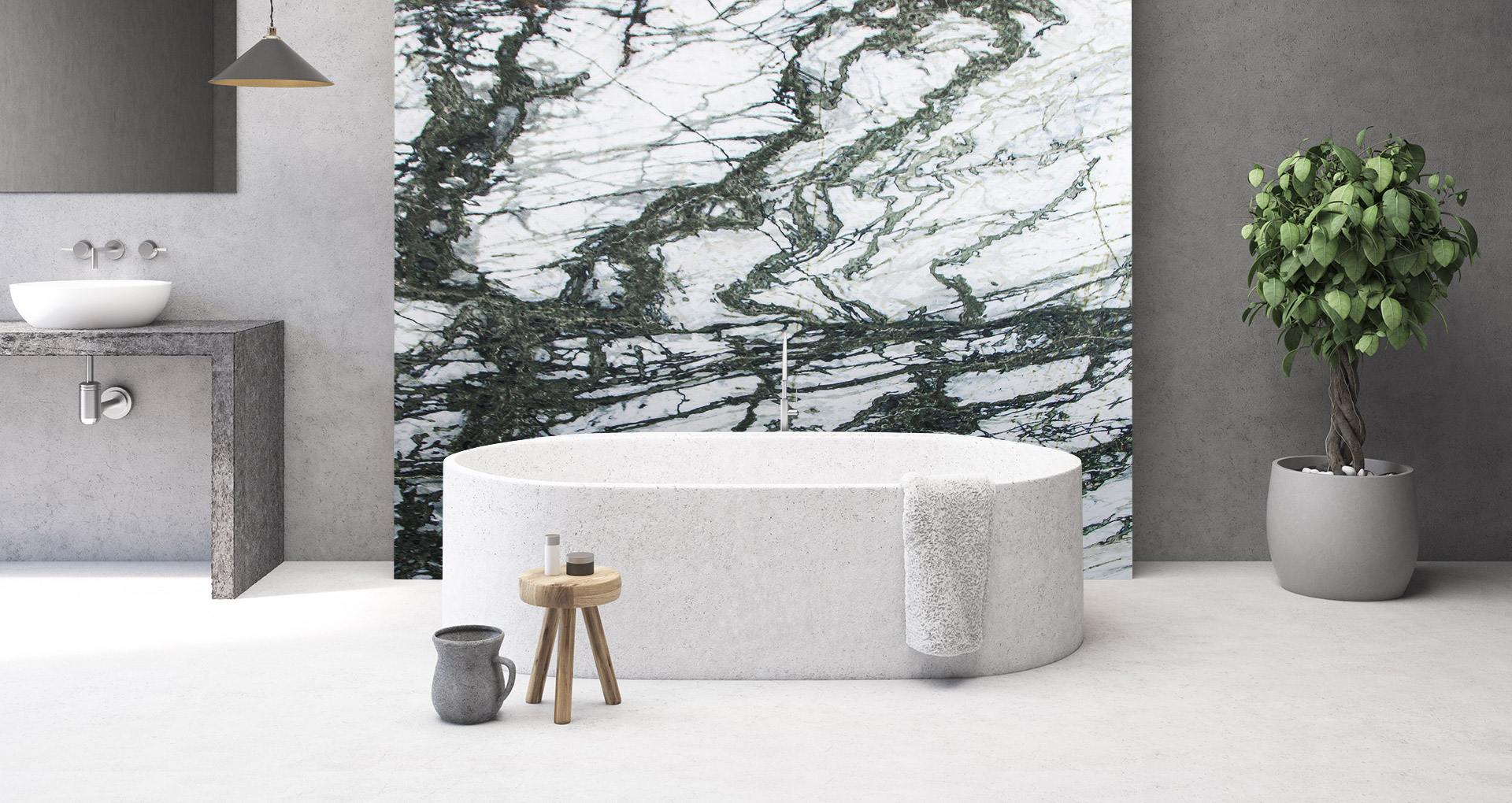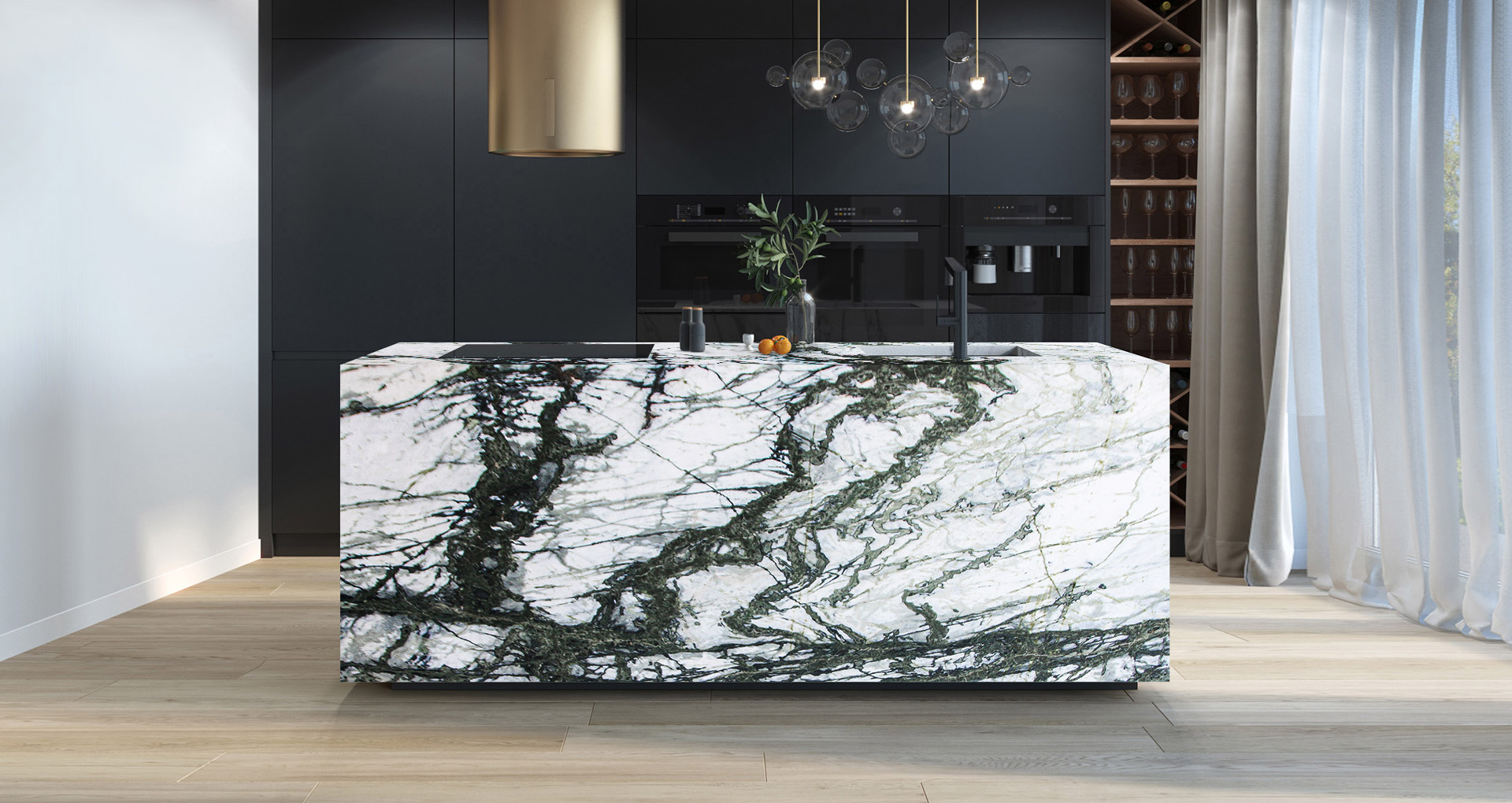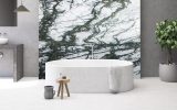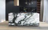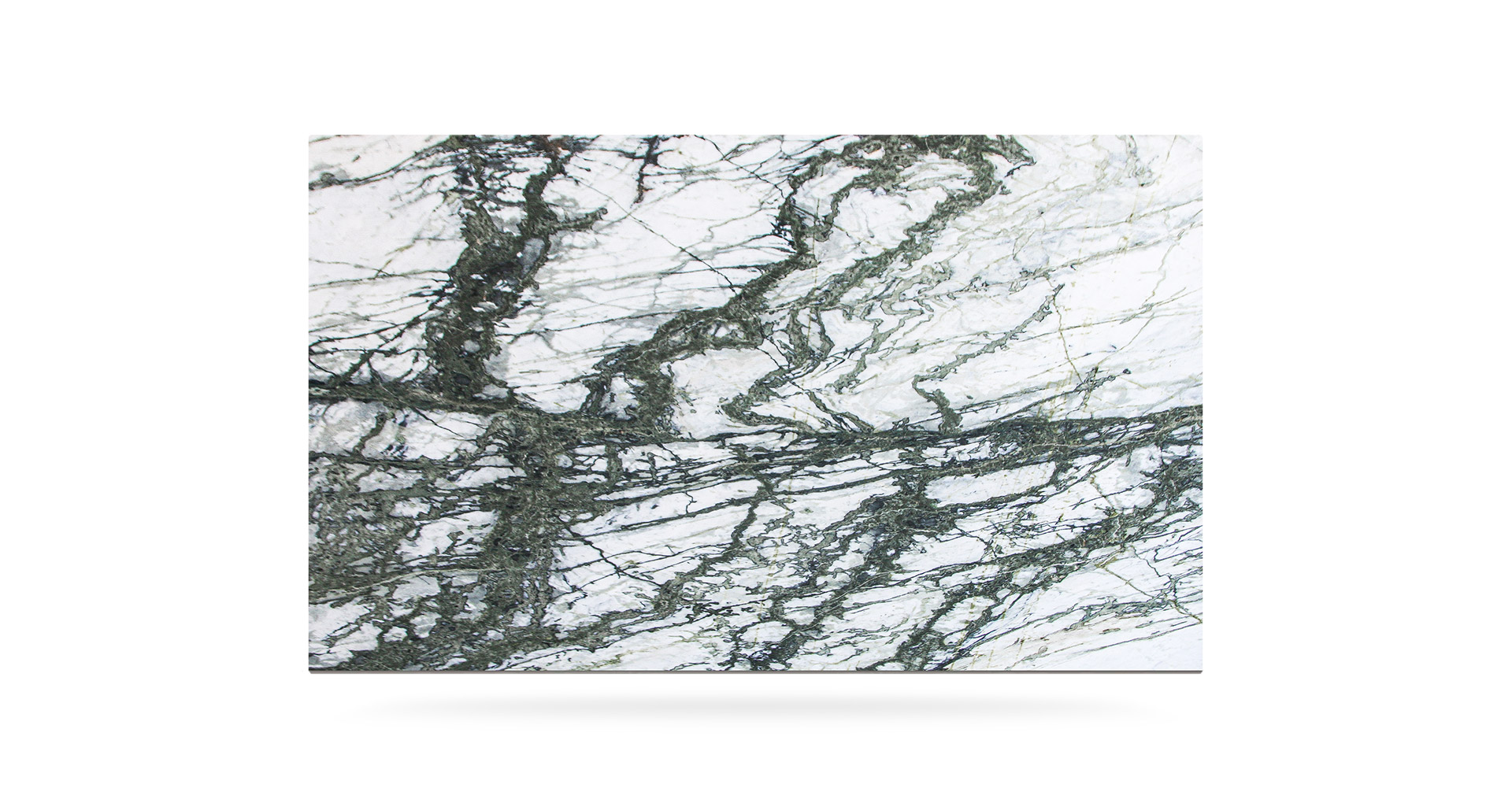 Exclusive marble from Asia. Its white background is very bright, and is crossed by green and black veins. Excellent for spot laying, Calacatta Green is a resistant and compact material, which is well suited to furnishing large, bright environments. Used for the creation of floors and wall coverings for bathrooms and kitchens, it can also be found in small furnishing details to which it is able to give elegance, brightness and sometimes contrast if combined with other darker materials.
