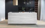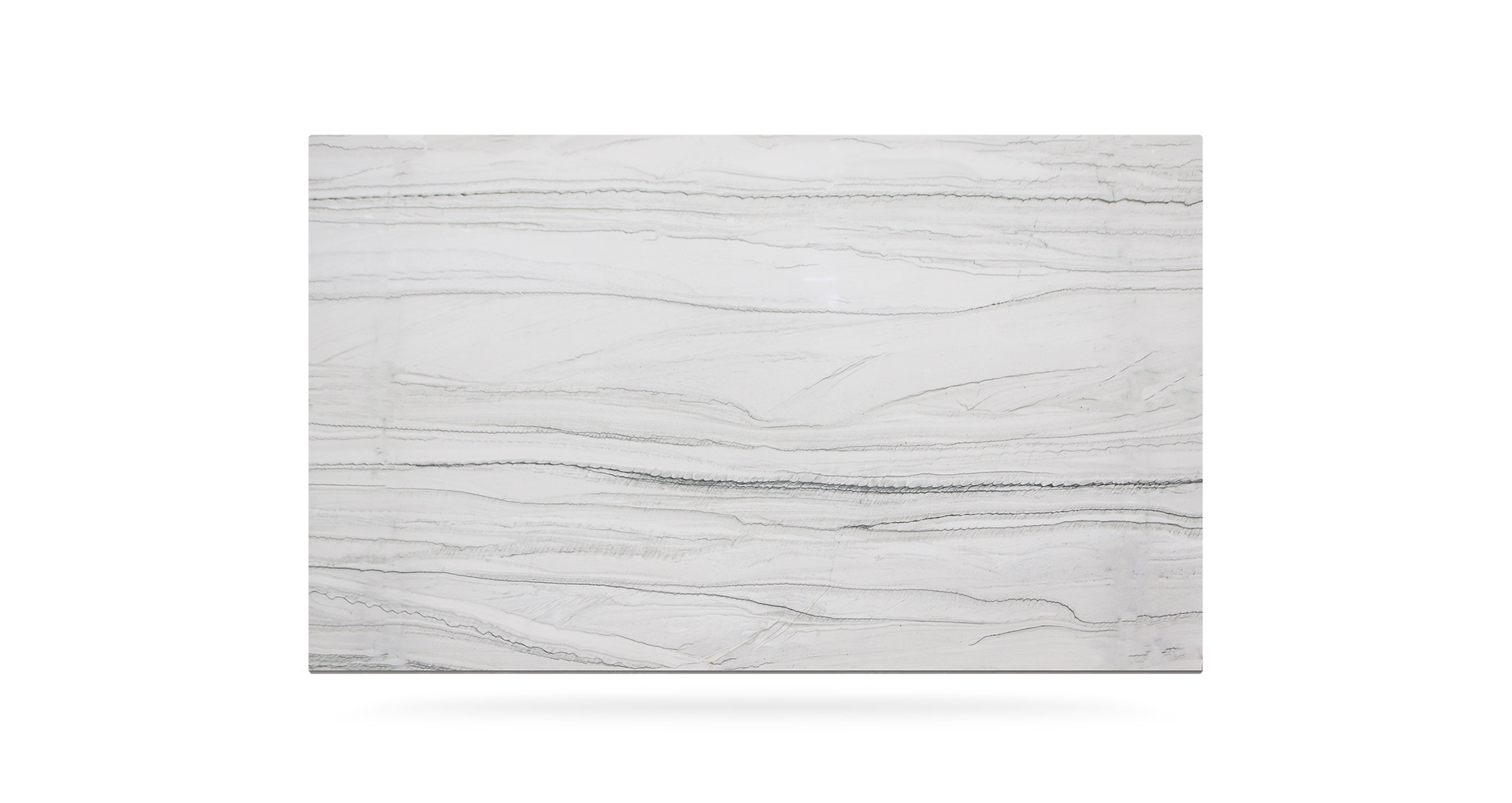This Brazilian quartzite is characterized by a creamy white background and thin black veins that cross the slab horizontally in an irregular manner, thus making each creation unique. Its tones, delicate and harmonious overall, are ideal for elegantly furnishing large and refined environments. Being a metamorphic rock consisting mainly of quartz, the result is a stone naturally resistant to abrasion, temperature changes and pollution. These characteristics make Chantilly Quartzite a material requested and used for interior and exterior constructions.