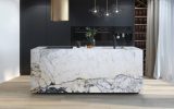 Italian marble from Monte Corchia. The white background is crossed by branches of grey-blue veins which create irregular ovules of different sizes and give the slab the appearance of an arabesque. This elegant stone with a long tradition is particularly hard and naturally capable of resisting abrasion and temperature changes. It is used in internal creations such as floors and wall coverings, and outdoor environments such as paths and porches.