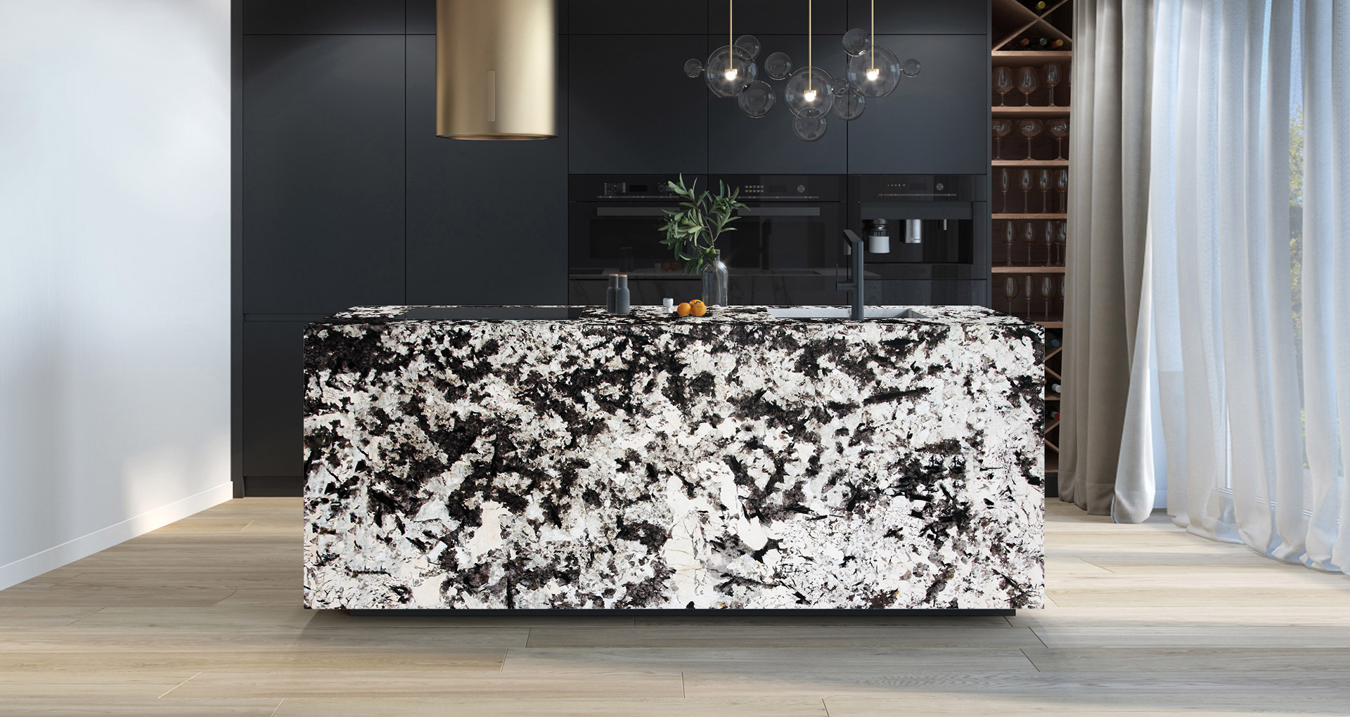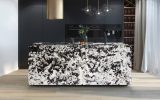 Granite from Brazil particularly appreciated for its irregular structure formed by a white background contrasted by numerous dark veins. Being an overall light material, it is able to give shine to the surrounding environment, and thanks to its resistance to acids it is suitable for the creation of kitchen shelves as well as for the usual interior design uses.
