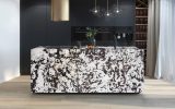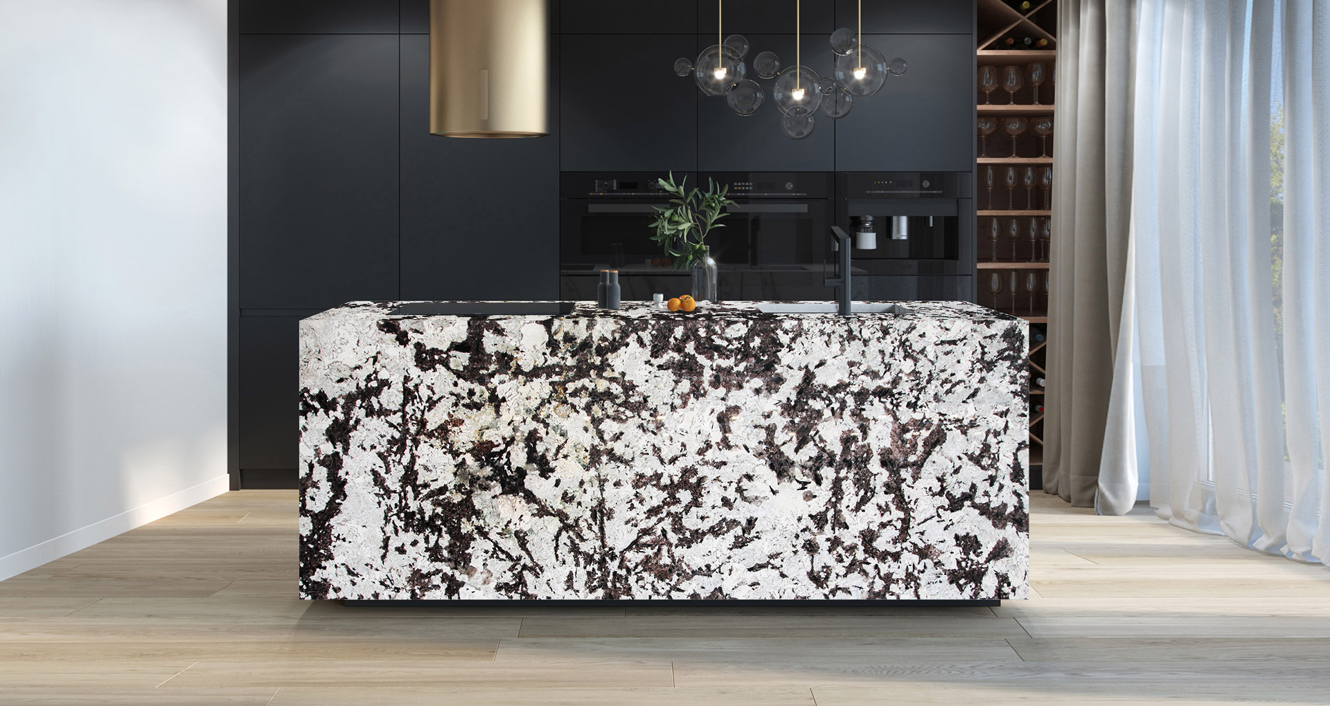 Granite from Brazil particularly appreciated for its irregular structure formed by a white background contrasted by numerous dark veins. Being an overall light material, it is able to give shine to the surrounding environment, and thanks to its resistance to acids it is suitable for the creation of kitchen shelves as well as for the usual interior design uses.