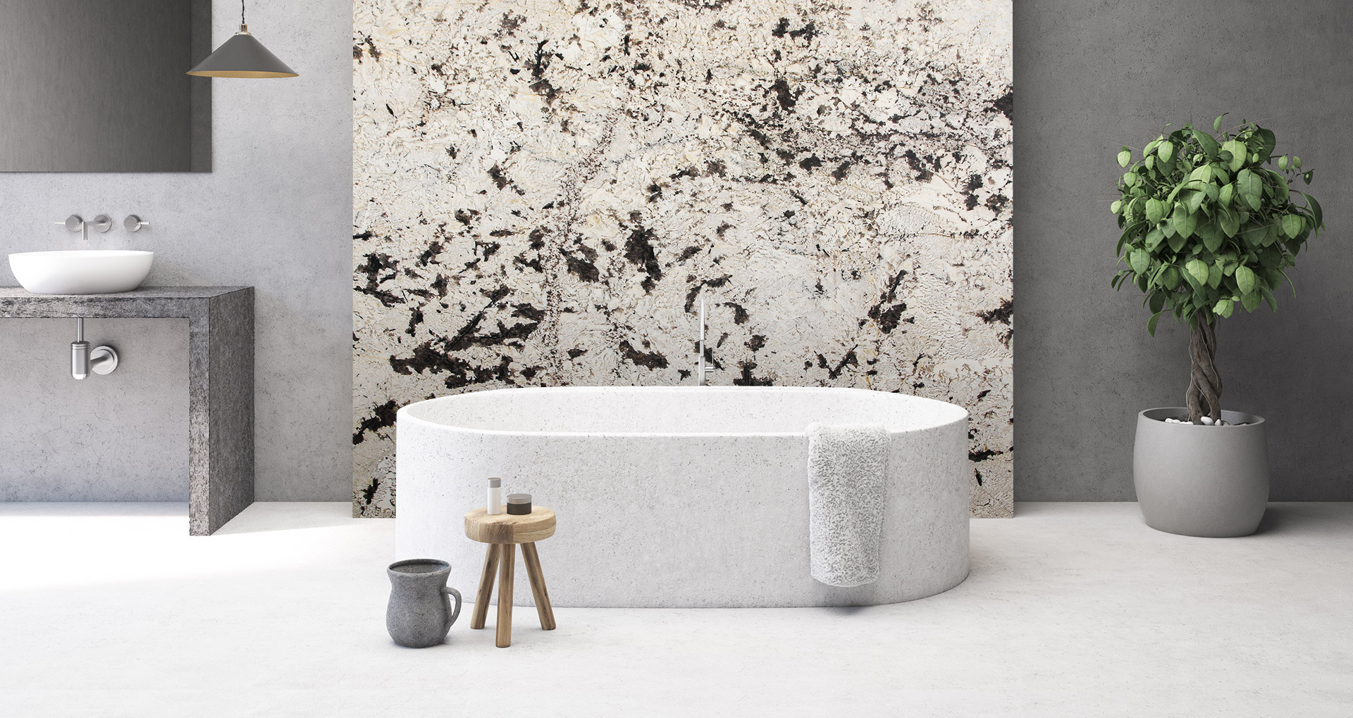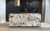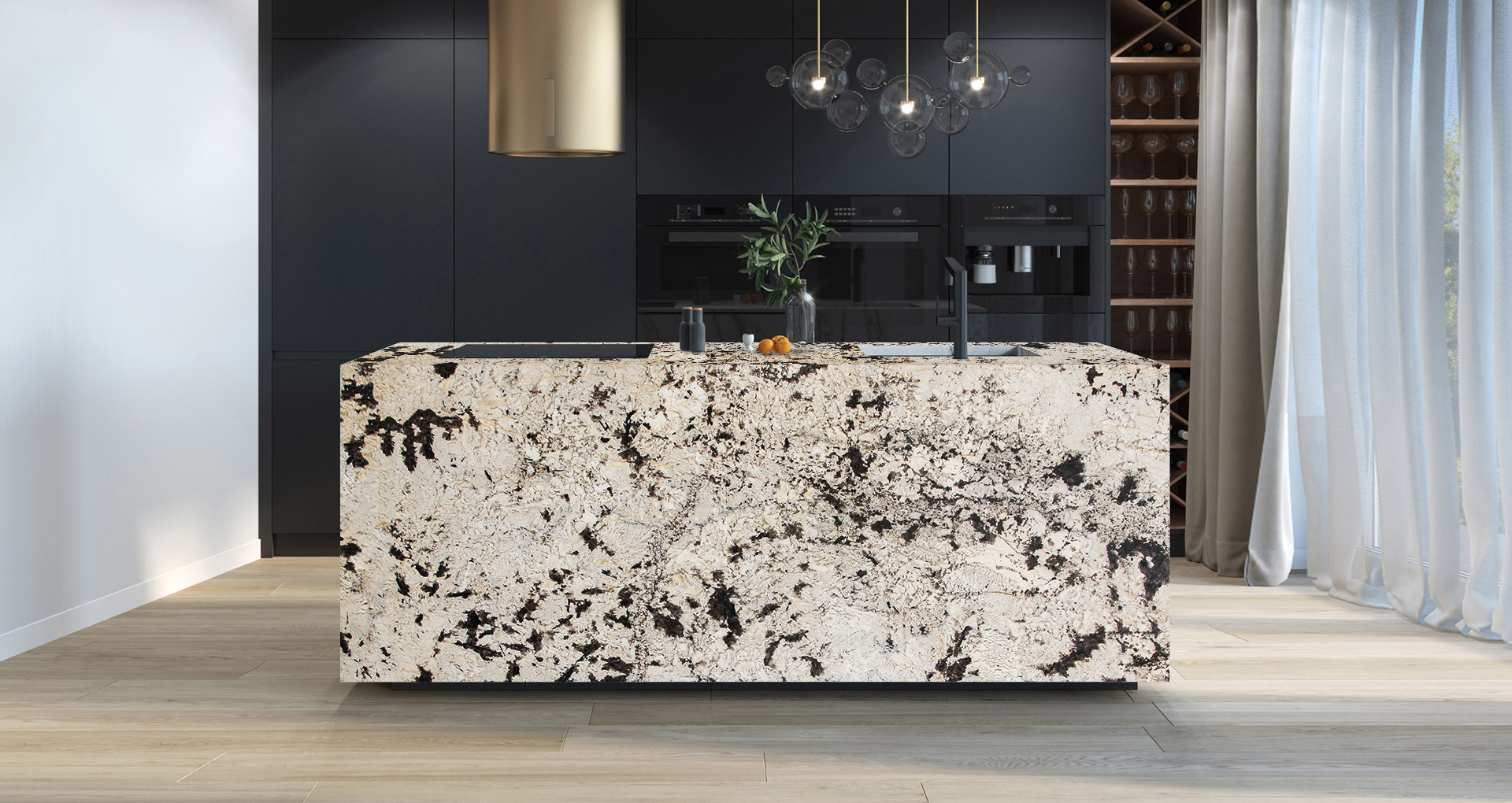 Granite from Brazil particularly appreciated for its irregular structure formed by a white background contrasted by numerous dark veins. Being an overall light material, it is able to give shine to the surrounding environment, and thanks to its resistance to acids it is suitable for the creation of kitchen shelves as well as for the usual interior design uses.