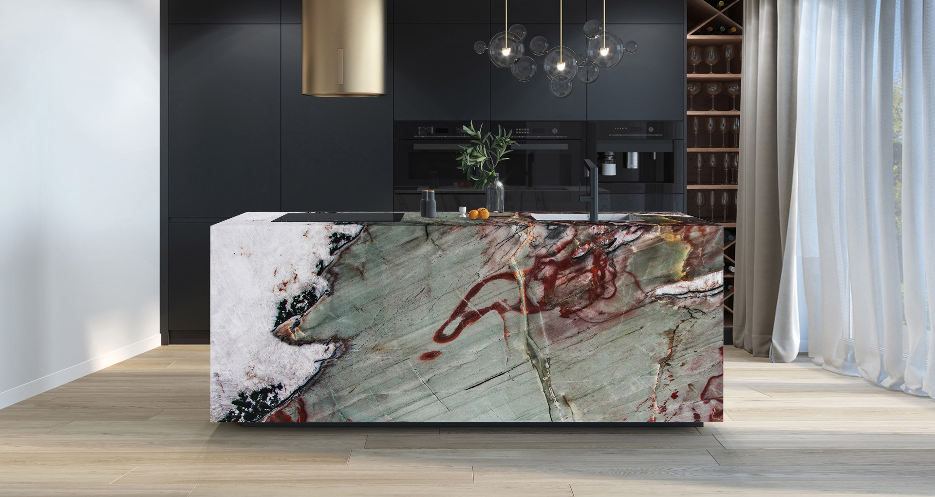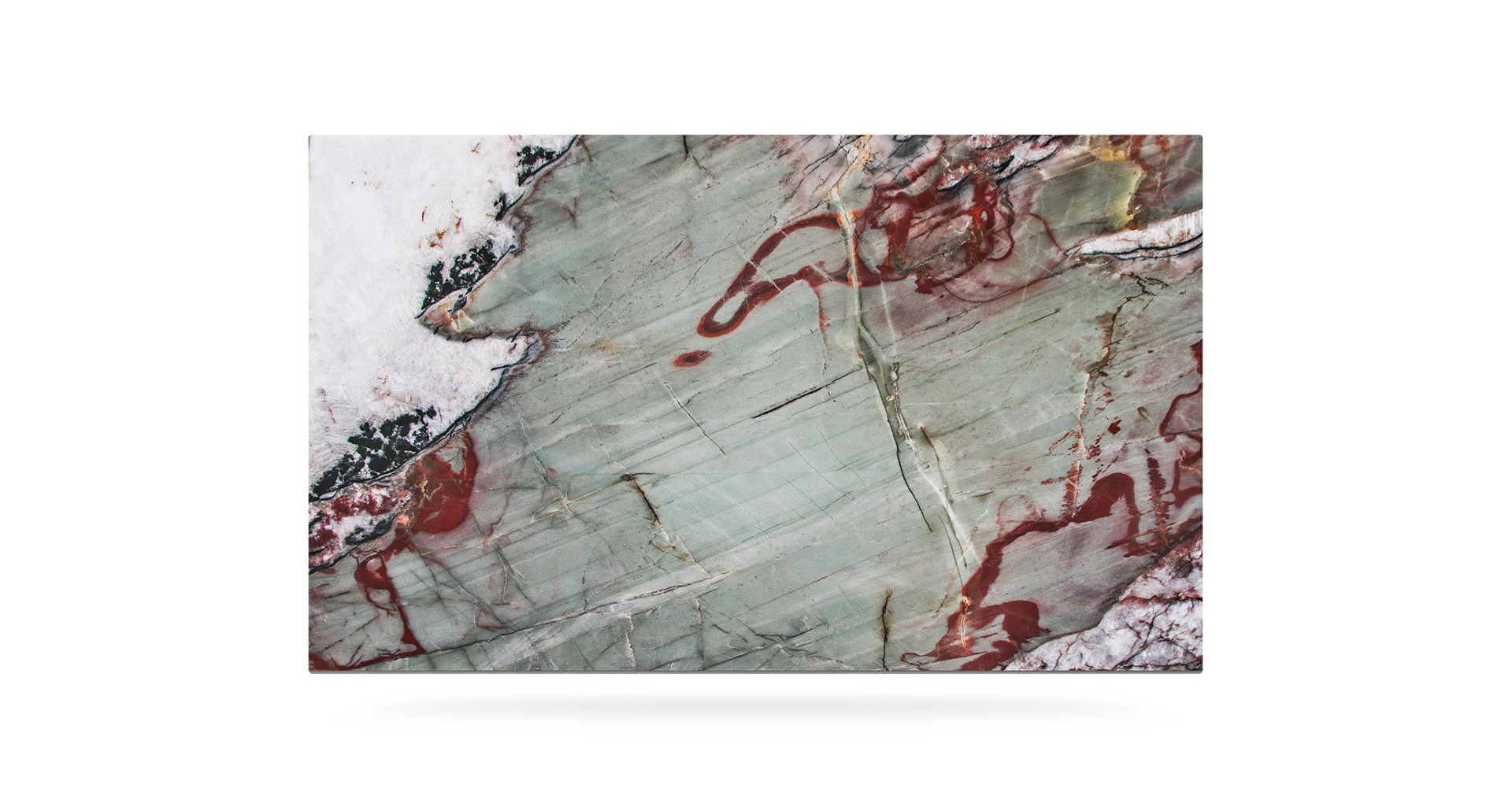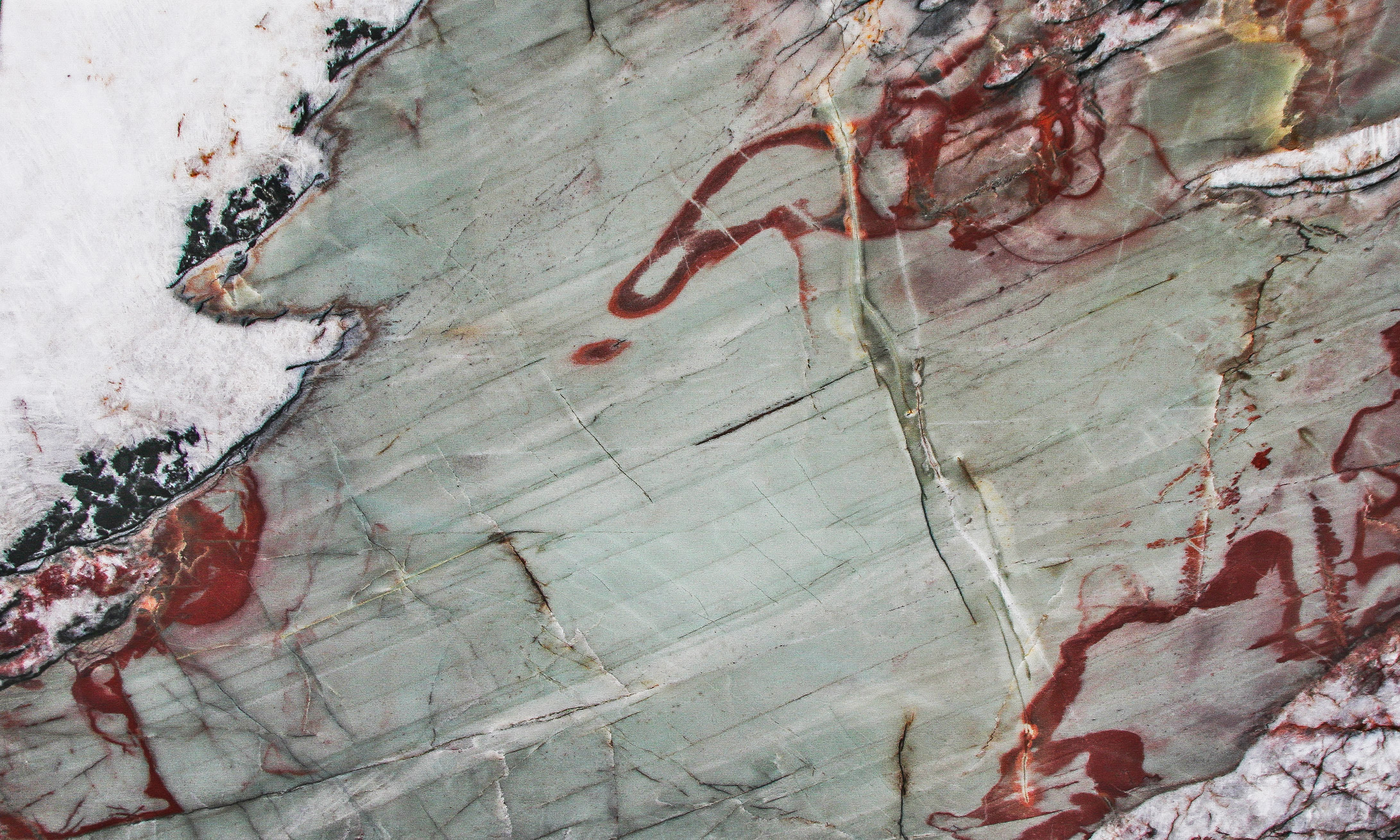 Quartzite extracted in Brazil whose colors generate a pleasant contrast. The crystalline white background is crossed by irregular black veins and by green, pink and sometimes yellow spots and shades. Of medium hardness, it is a versatile material. Excellent for coverings and decorations, it is recommended in a polished finish.