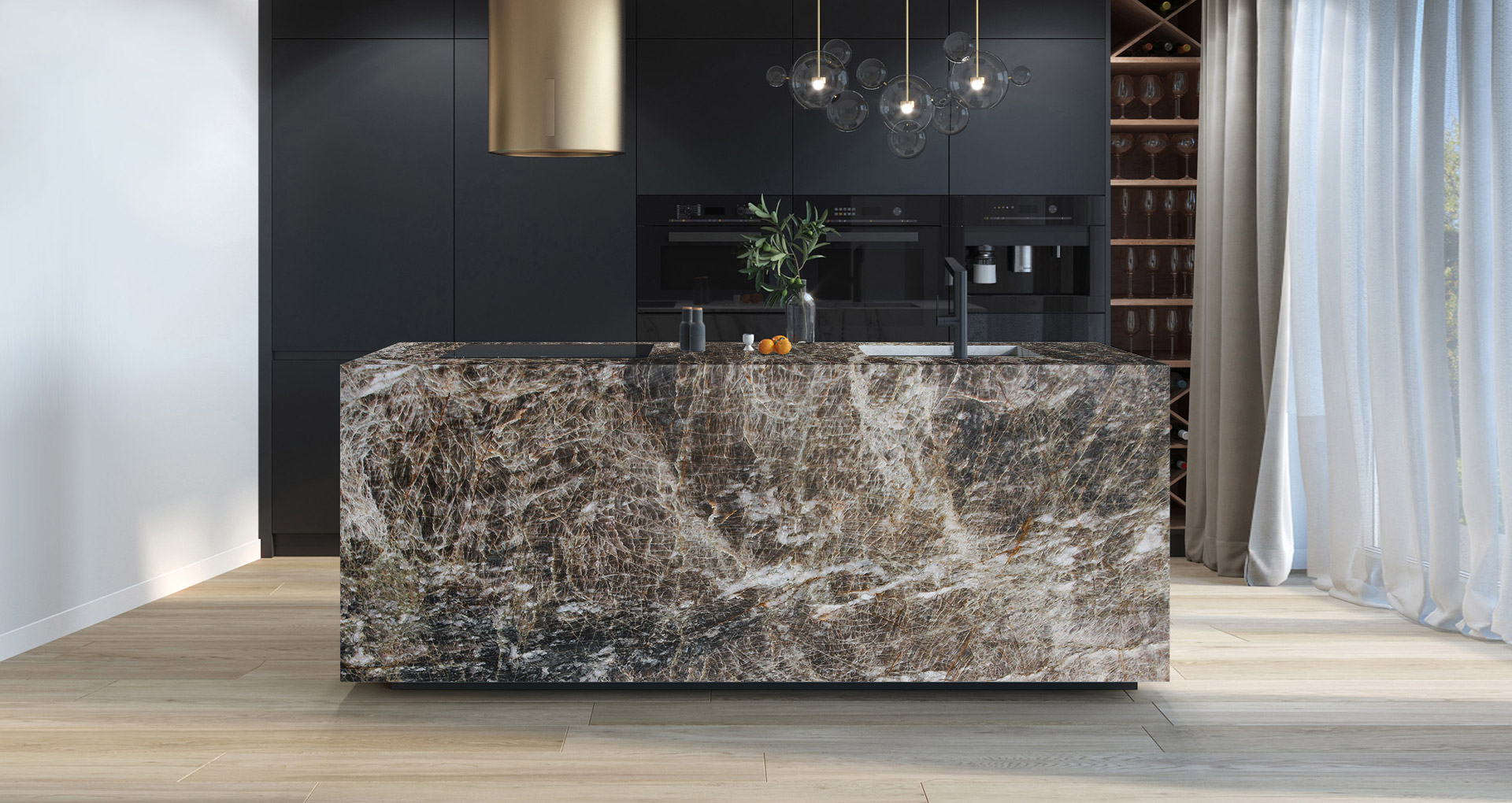 Quartzite extracted in Brazil with a brown/beige background crossed by light veins. This contrast of colors pleasing to the eye is the main characteristic of this mysterious and elegant natural stone. Compact and resistant, it can be used for both interior and exterior projects.