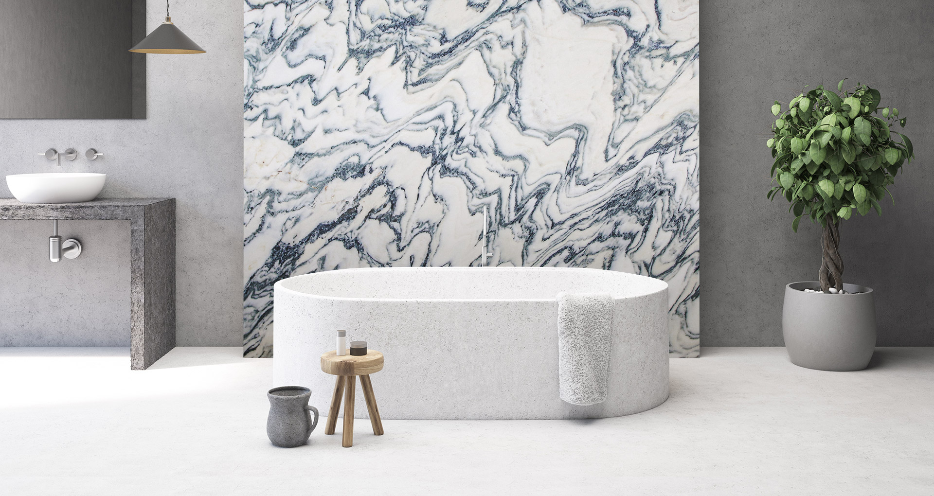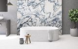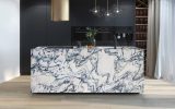 Elegant marble from the Apuan Alps, the source of some of the most well-known materials of our peninsula. Characterized by a white background, sometimes cream-colored, it is crossed by dark gray veins that form an irregular network that is the main characteristic of this natural stone. Particularly suitable in this case is the open-book laying, as Fantastico Arni is a particularly oriented material capable of creating clear and visible figures.