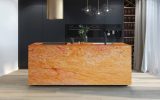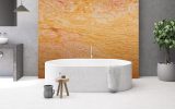 Giallo Reale is a fine-grained Italian marble formed through a metamorphic process between sedimentary rocks. Ocher in colour, it has irregular veins and white and red shades which guarantee uniqueness to any type of creation. Recommended in a glossy or brushed finish, this material enriches the surrounding environment with an ancient and fascinating atmosphere. Floors, wall coverings and kitchen tops are some of the possible creations that make Giallo Reale a first choice material sought after by professionals in the sector.