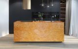 Giallo Reale is a fine-grained Italian marble formed through a metamorphic process between sedimentary rocks. Ocher in colour, it has irregular veins and white and red shades which guarantee uniqueness to any type of creation. Recommended in a glossy or brushed finish, this material enriches the surrounding environment with an ancient and fascinating atmosphere. Floors, wall coverings and kitchen tops are some of the possible creations that make Giallo Reale a first choice material sought after by professionals in the sector.