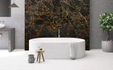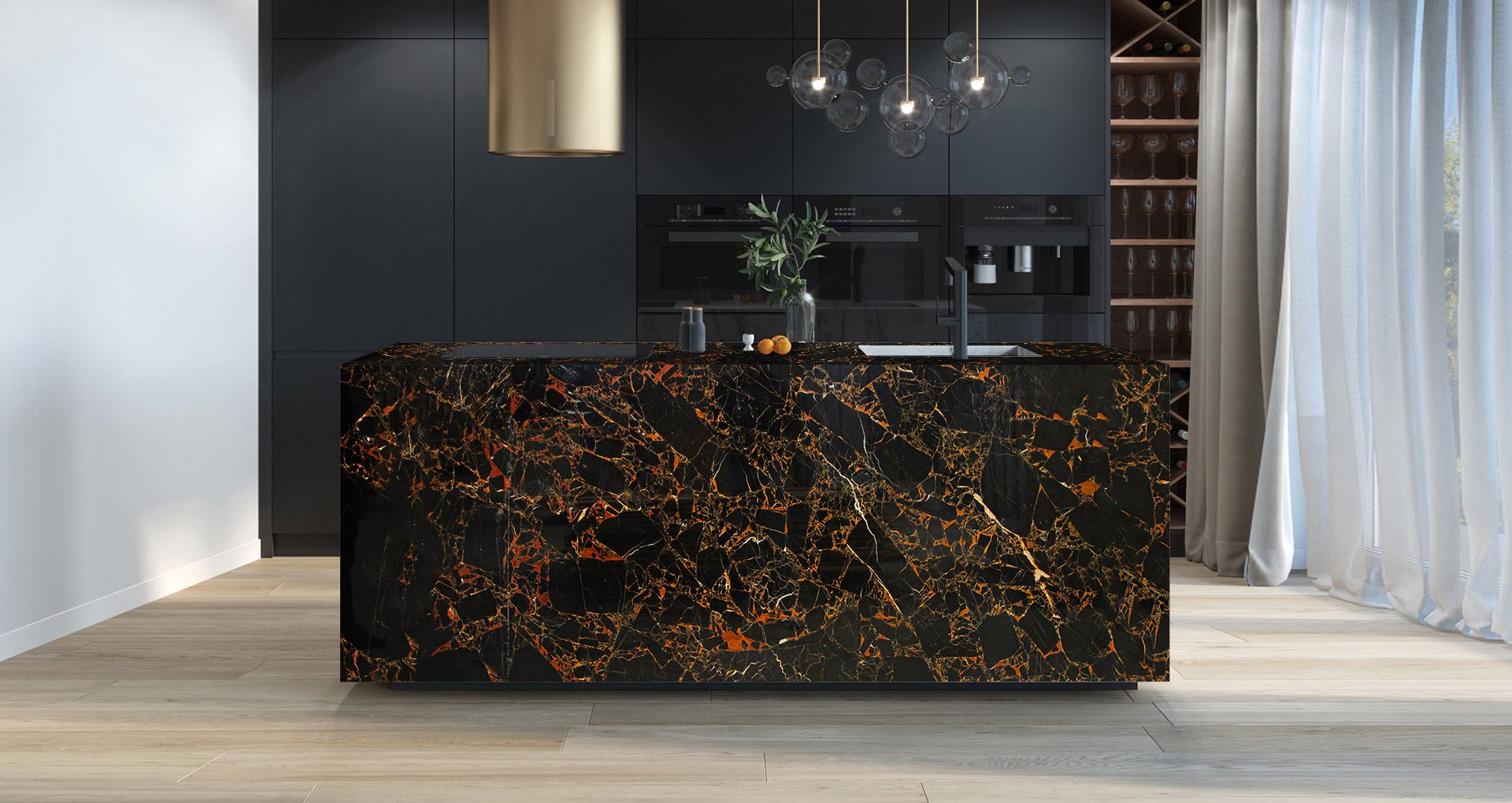 Beautiful marble with an intense and brilliant black colour with golden veins. Quarried in Italy, this very elegant and refined marble, has a very decorative look and is therefore ideal for architectural projects like columns, interior flooring for churches and building as well as claddings and countertops.