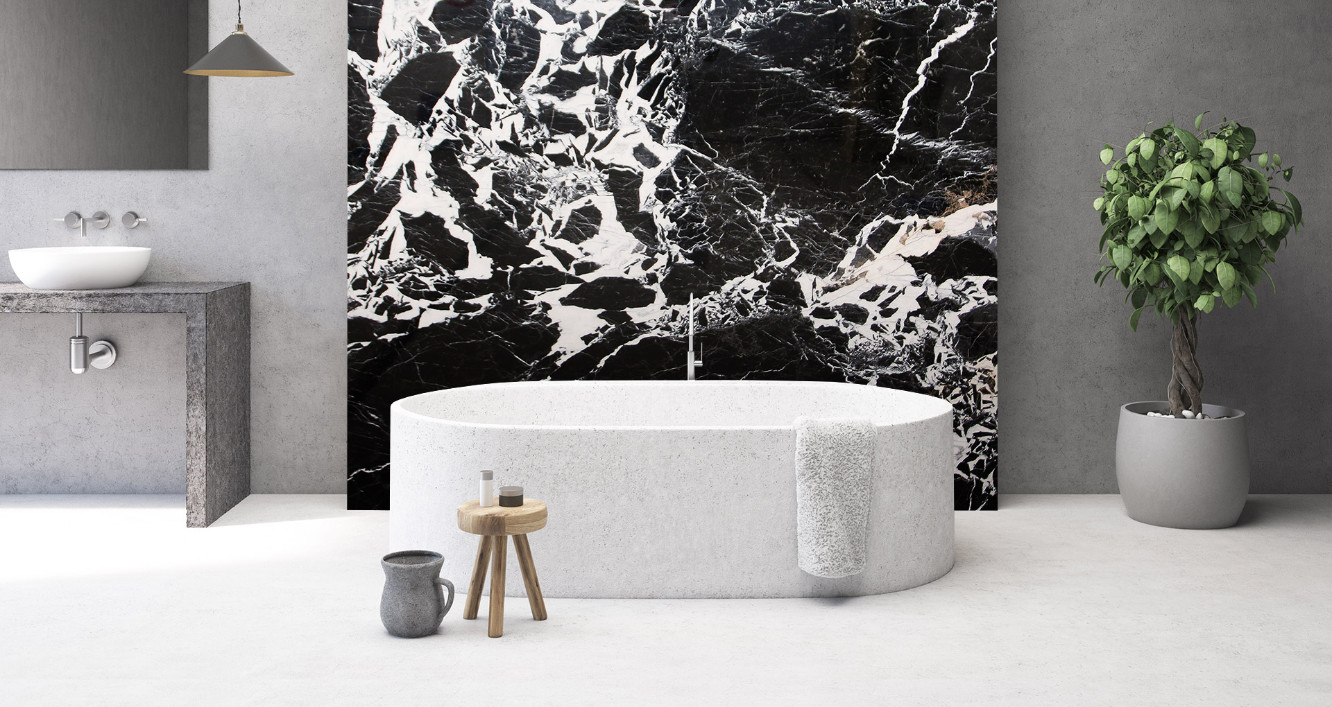 French marble with an intense black color crossed by irregular white veins. The antithesis between the black background and the white intrusions creates an optical effect that hardly goes unnoticed. Used since ancient times for the construction of noble palaces and historic monuments, Grand Antique is a hard material that is particularly resistant to wear and atmospheric agents. For this reason, it is used in external and internal environments, such as floors, kitchens, wall coverings or often combined with veined white marbles in checkerboard floors.