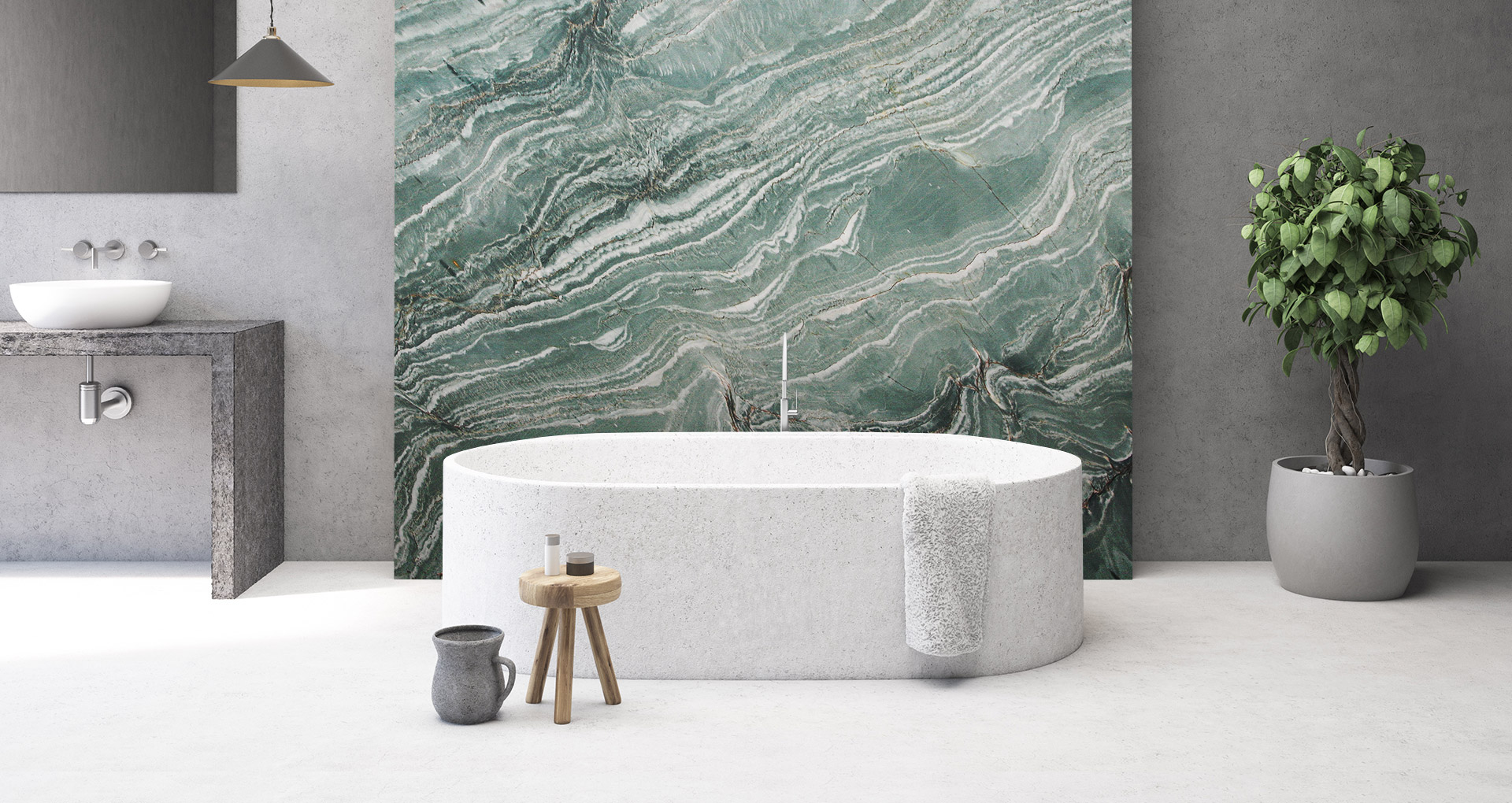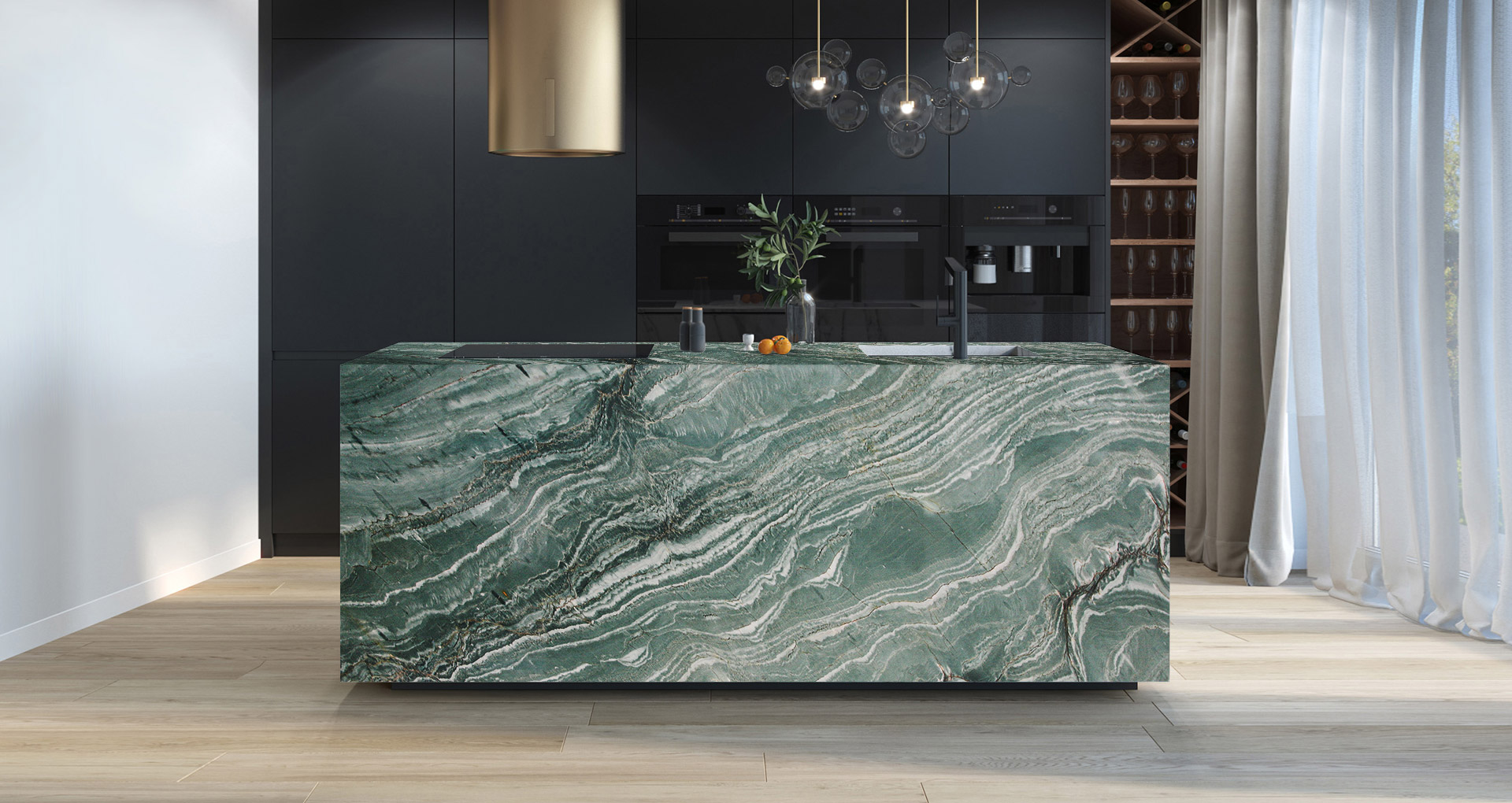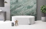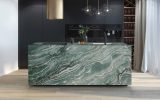 Laguna Bay is a quartzite of extraordinary aesthetic character, distinguished by an intense emerald-green background crossed by sinuous white veining that creates deep dark-green nuances. A defining feature of this natural stone is the inherent dynamism of its patterns, which recalls the fluid movement of waves. Its excellent physical properties facilitate processing and ensure high performance over time: Laguna Bay is suitable for the creation of kitchen and bathroom countertops, flooring, stairs, and wall cladding, enhancing residential and contract spaces with distinctive, contemporary elegance.