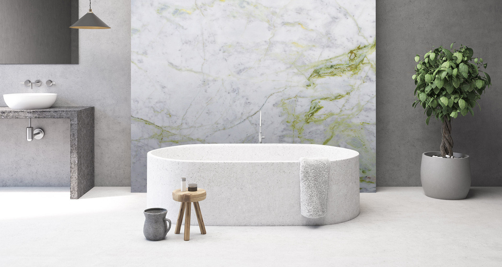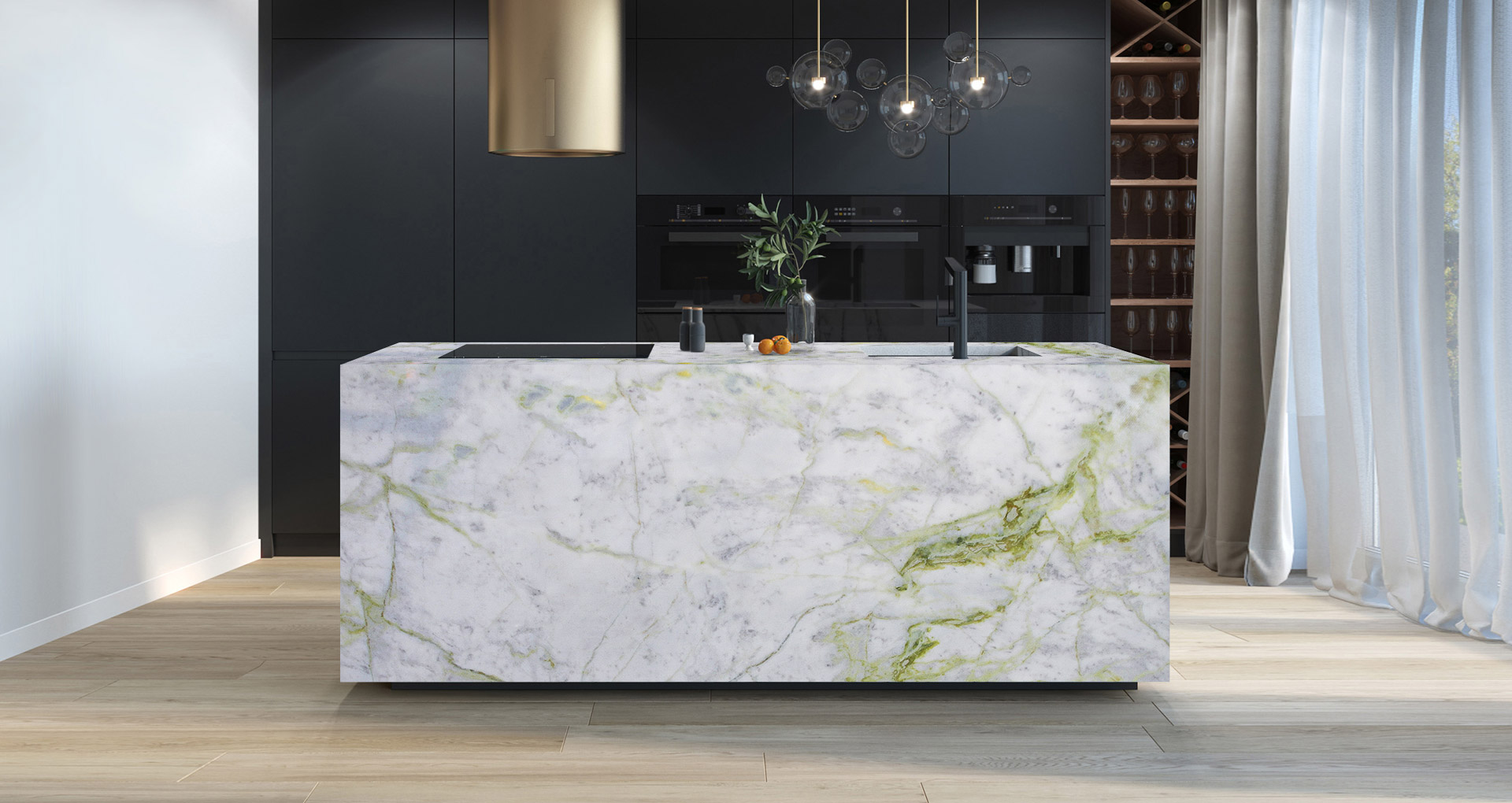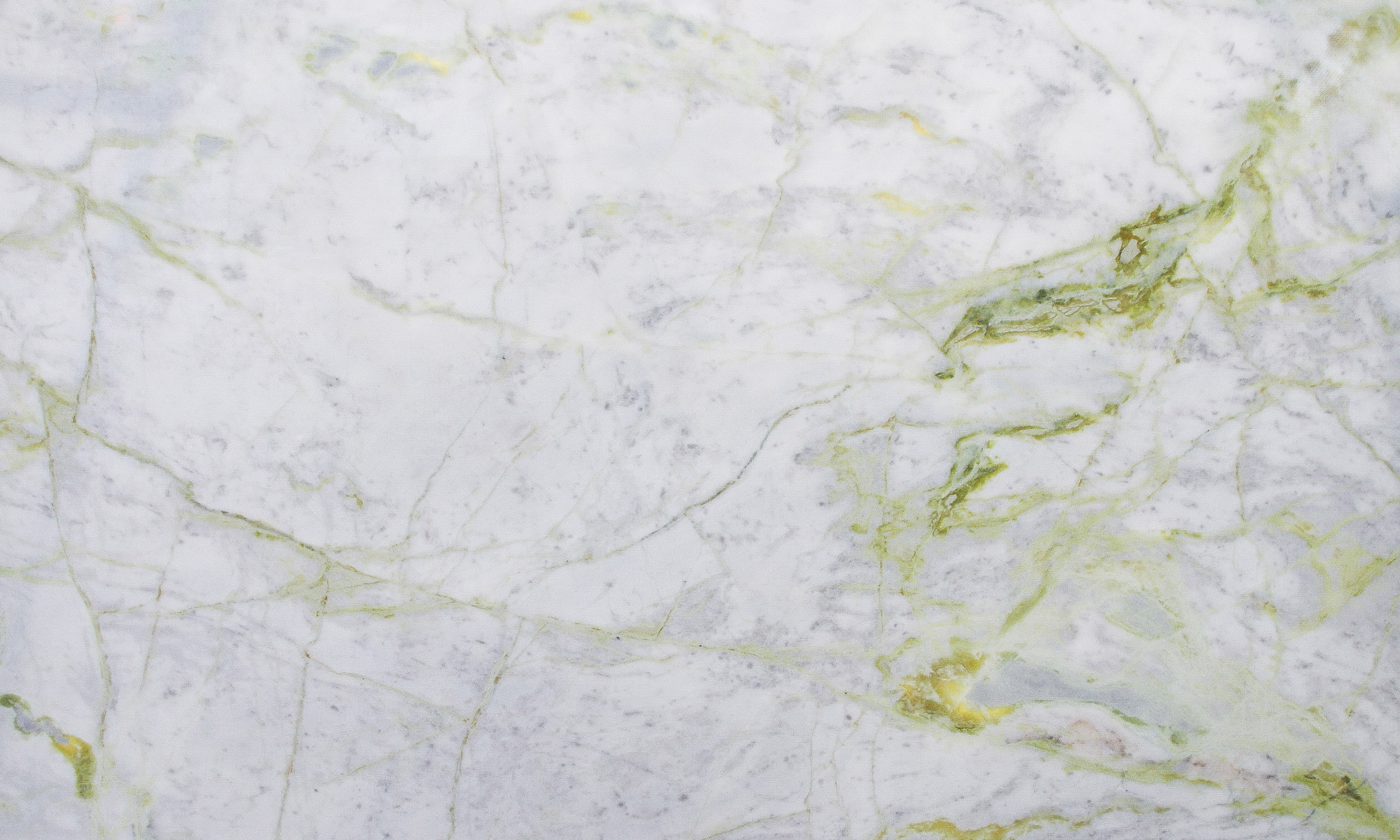 Marble from Africa, mainly white in colour. Bright green-yellow veins cross the slabs in irregular, almost fluorescent movements, characterizing this natural stone which takes its name from the liveliness of its colours. Luminous is a compact and resistant material, which is well suited to interior creations such as floors and wall coverings, but also kitchens and sinks.