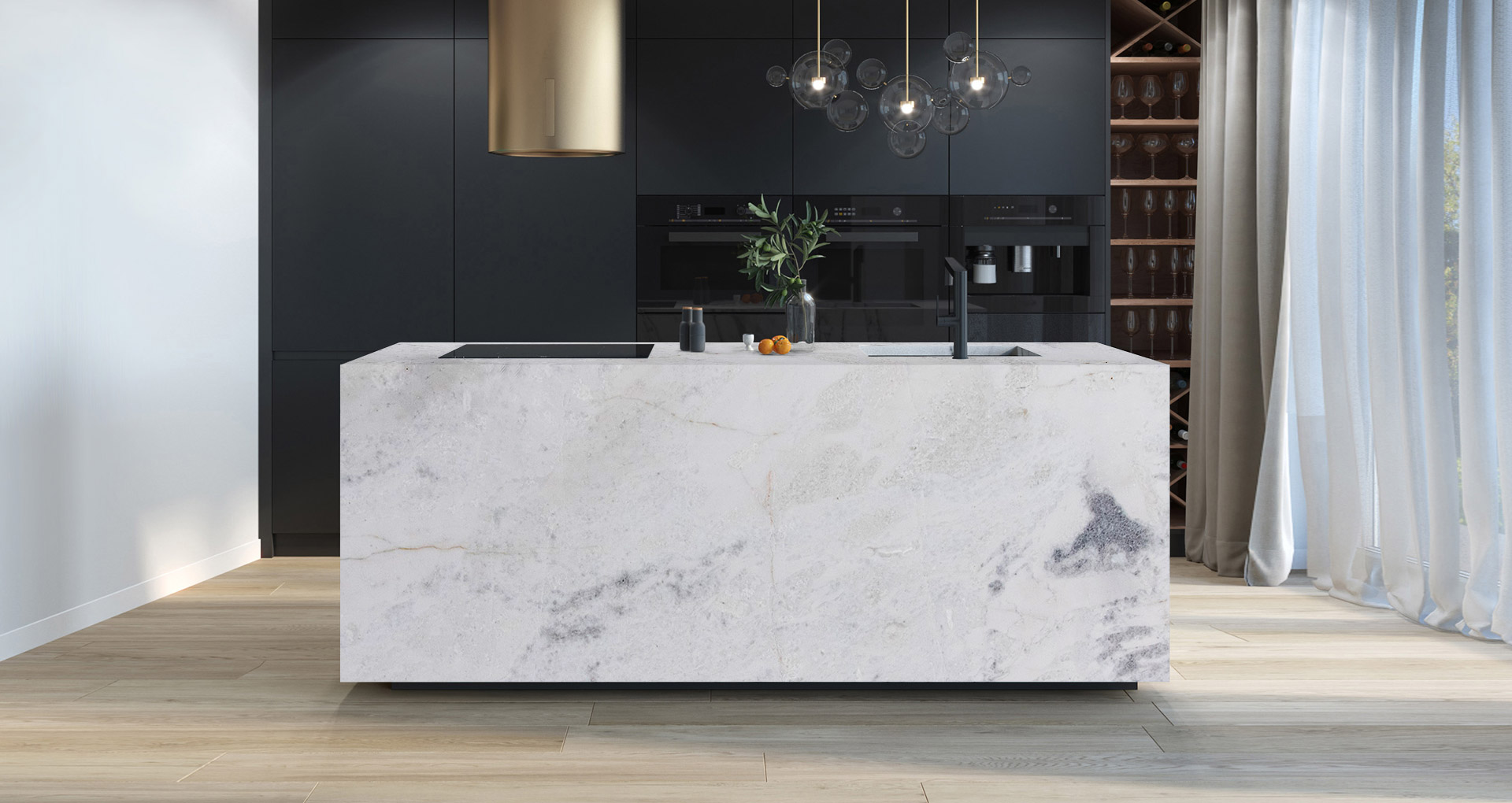 Elegant African marble with cold colors, characterized by a white background with soft gray and sometimes green shades. This particular structure makes Namib Fantasy a highly sought-after material for the creation of large and bright interior environments, which we want to guarantee a refined elegance. Available in any finish, it is a hard and resistant material capable of resisting temperature changes and trampling.