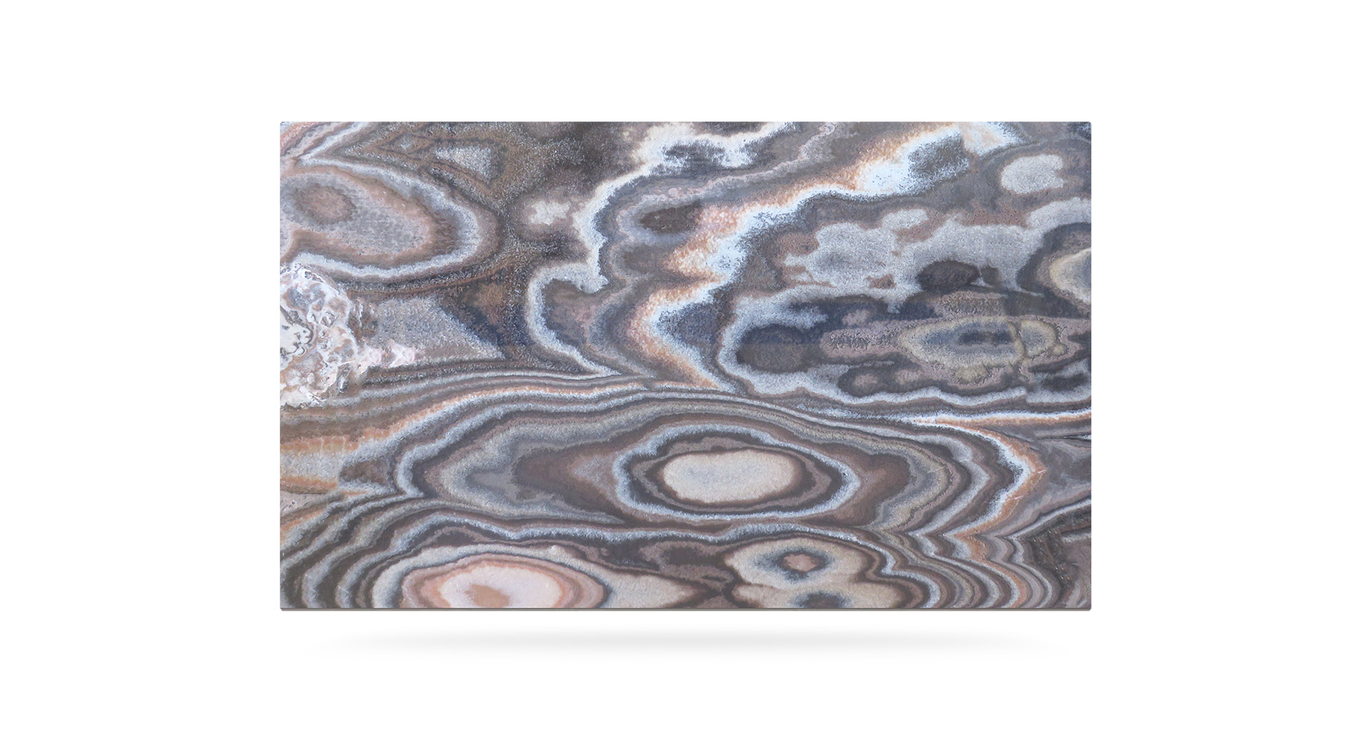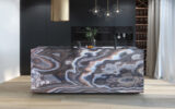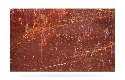 Natural textured onyx. The dominant colur is dark red with ondulating movements that vary from brown to white and that give an overall intense character to the surface. Particularly suitable for interior design projects like artistic elements, sculptures, flooring and decoration objects.