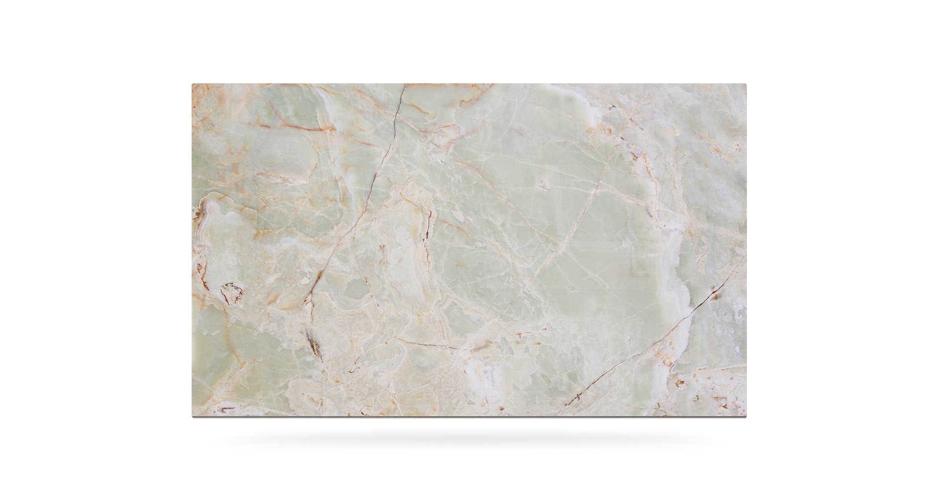 Very precious green onyx from the Middle East. The various shades, always on the green graduation, make each creation different from the previous one. Its cloudy shape is sometimes interrupted by thin orange veins which represent a distinctive characteristic of this material. Since Green Onice is a naturally delicate material, it is recommended for use in internal environments and with a glossy finish.