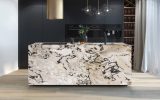 Oyster Picasso is a fine marble from Namibia, distinguished by an ivory base crossed by dynamic veins in shades of grey, black, green, and yellow. This unique combination of colors gives the material a sophisticated elegance and a strong personality, making it ideal for interior design projects where a balance between natural beauty and artistic flair is desired.