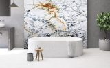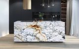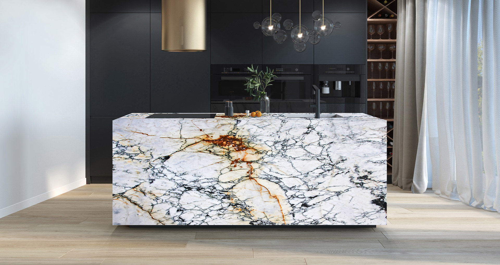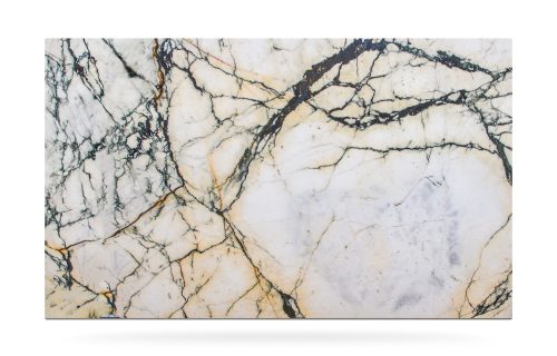 Italian marble with a white marble background with golden shades and black veins. Valuable and refined, this material, available in any finish, is an excellent choice for furnishing large, bright environments, given its warm tones and ability to reflect light. Its sophisticated and elegant appearance allows for perfect coordination and application in bathrooms, kitchens and other interior design projects.