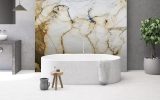 Italian marble with a white marble background with golden shades and black veins. Valuable and refined, this material, available in any finish, is an excellent choice for furnishing large, bright environments, given its warm tones and ability to reflect light. Its sophisticated and elegant appearance allows for perfect coordination and application in bathrooms, kitchens and other interior design projects.