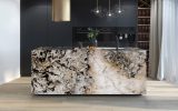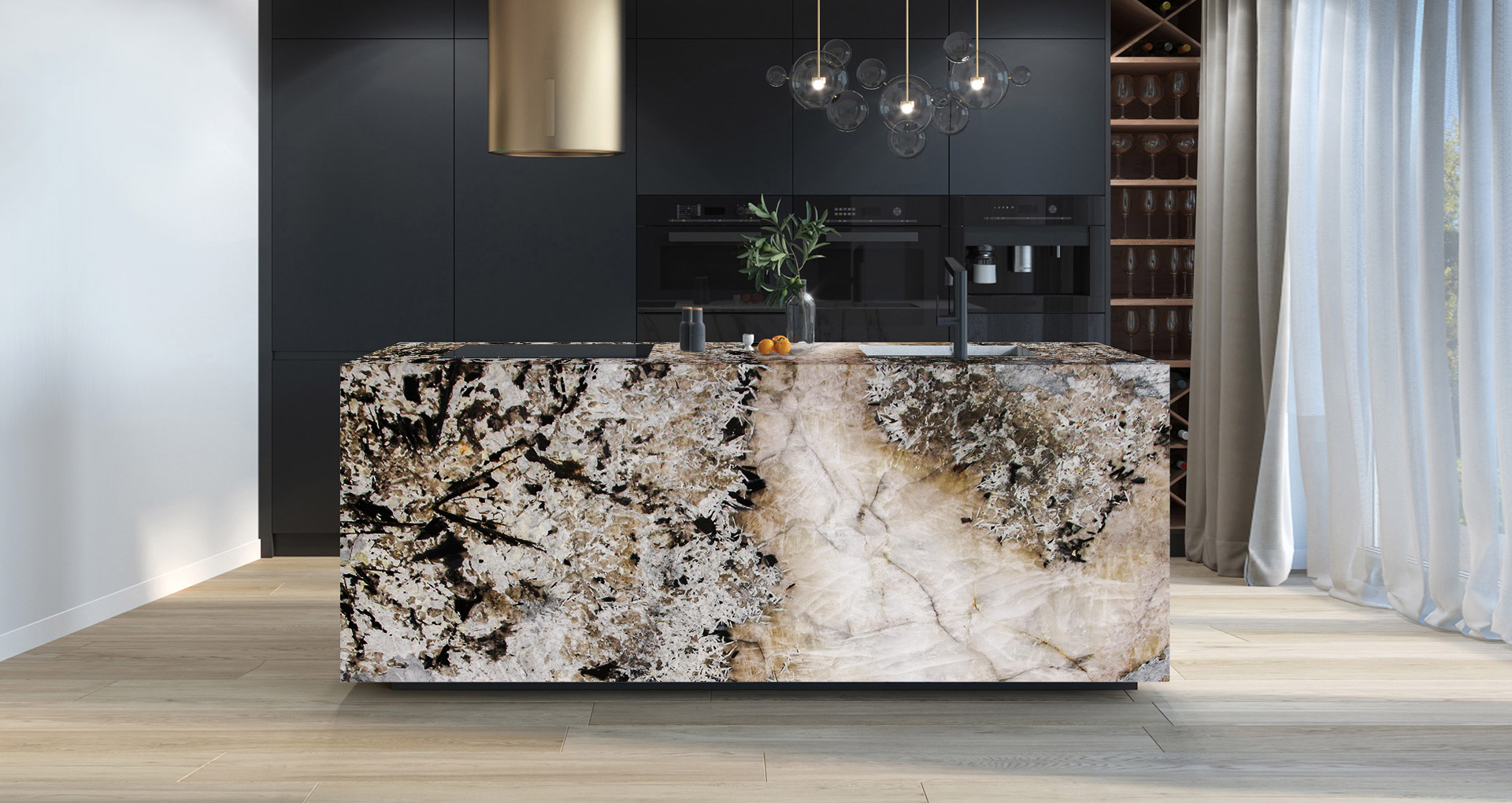 Patagonia is a Brazilian quartzite with a complex design, made up of colors ranging from beige to brown, black and white. This stone of volcanic origin is particularly suitable for interior furnishings due to its innovative and refined beauty. Millions of years of seismic activity have contributed to making this material a stone of great hardness and practicality.