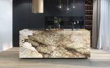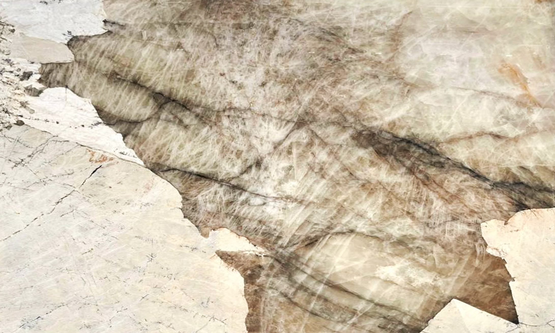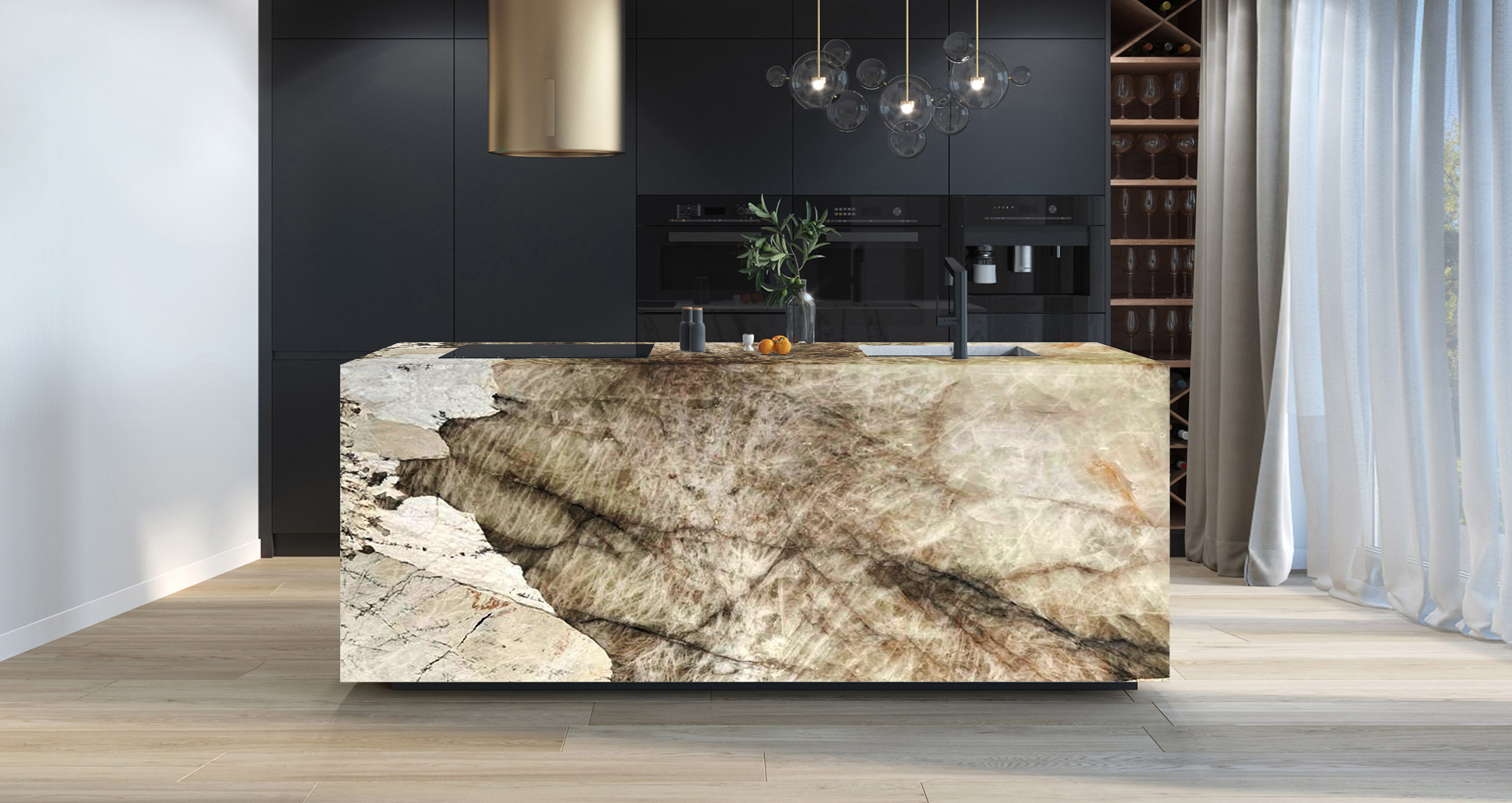 Patagonia is a Brazilian quartzite with a complex design, made up of colors ranging from beige to brown, black and white. This stone of volcanic origin is particularly suitable for interior furnishings due to its innovative and refined beauty. Millions of years of seismic activity have contributed to making this material a stone of great hardness and practicality.