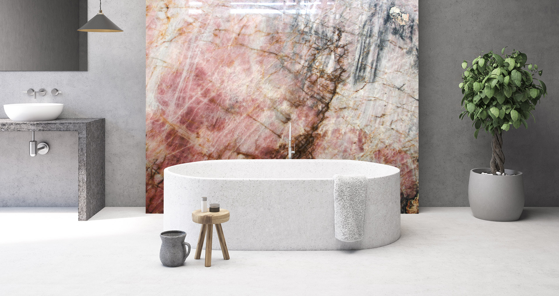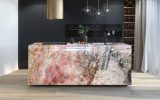 Elegant pink quartzite enriched with ivory and lilac veins. Imported from Brazil, it stands out for its cloudy and transparent structure that lends itself to backlighting. Cristallo Rosa is a stone naturally resistant to acids and thermal shocks, which is why it can also be used for kitchen countertops as well as for wall coverings and open-spot floors.