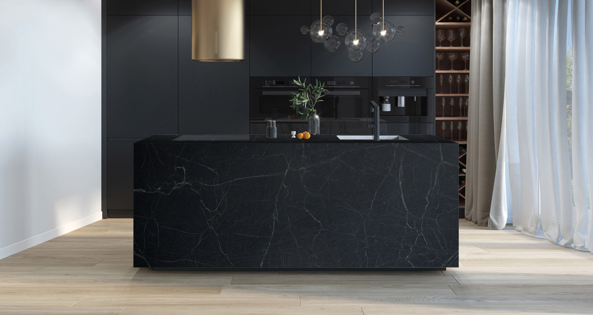 Natural Brazilian stone with a dark gray color. Its soapy appearance is due to the presence of talcoschist, a type of metamorphic rock with a lamellar structure. Used for centuries for building constructions, soapstone can take on different shades of color depending on the place of extraction. This very hard stone, resistant to abrasion and temperature changes, is also used for external constructions, as well as for classic internal works such as floors and wall coverings.