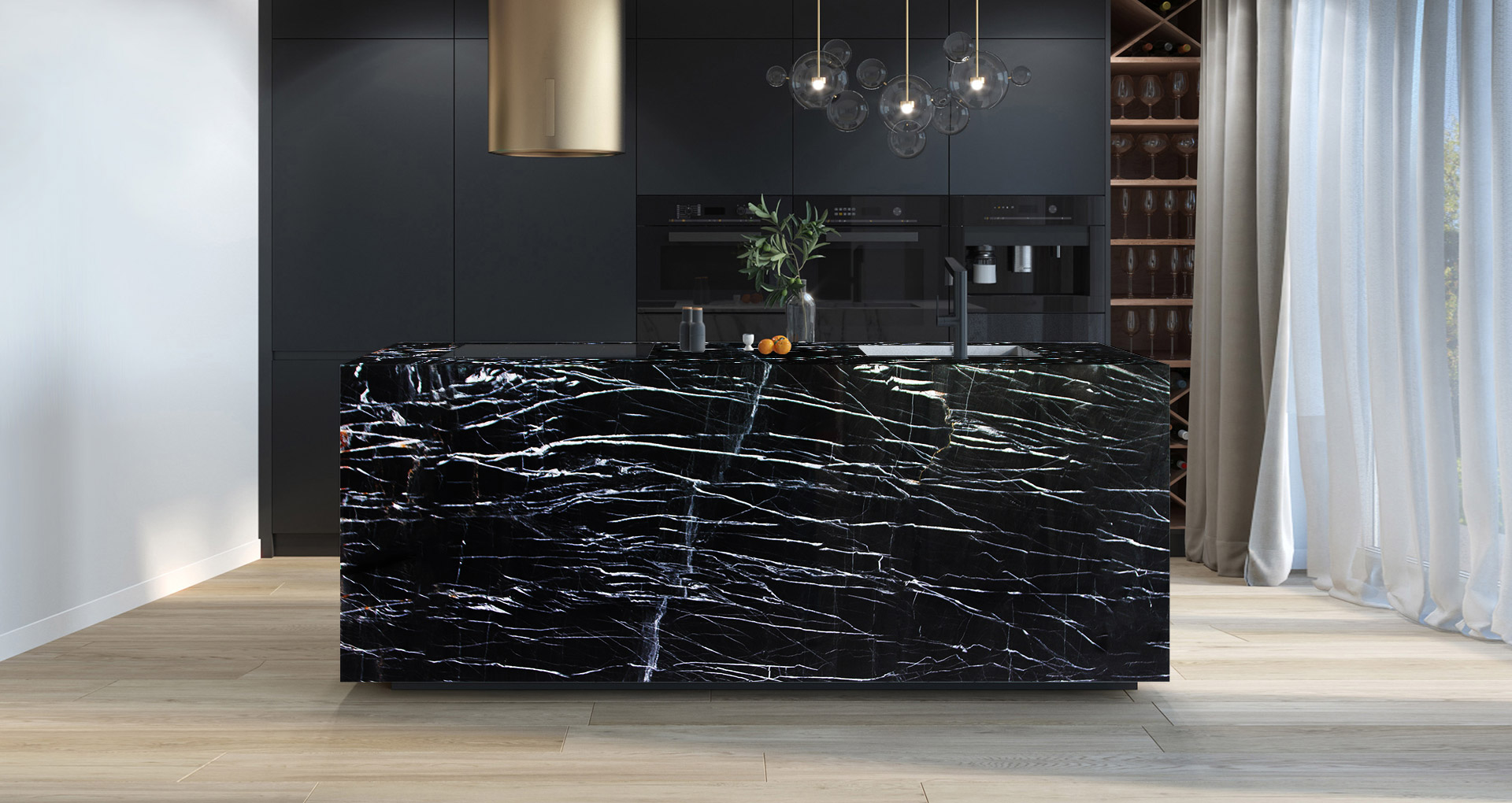 Brazilian quartzite with an intense black background crossed by branches of thin white veins. The contrast generated by the pairing of these two colors is particularly pleasing to the eye. Resistant to temperature changes and wear, this natural stone is also suitable for furnishing outdoor environments such as swimming pools and porches, as well as classic interior design projects.