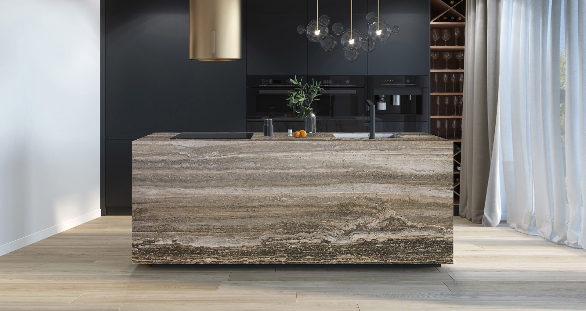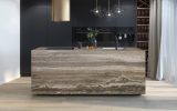 Travertino Ocean Blue is a sedimentary limestone rock belonging to the Travertine family, but which stands out for its calm colors that recall those of the sea. The irregular streaks that cross the slabs vary from blue to gray and brown, on the beige background that has always distinguished this material. The compactness of the marble makes Travertino Ocean Blue an excellent choice for the creation of interior and exterior environments, as well as a decorative element for design objects of various kinds.