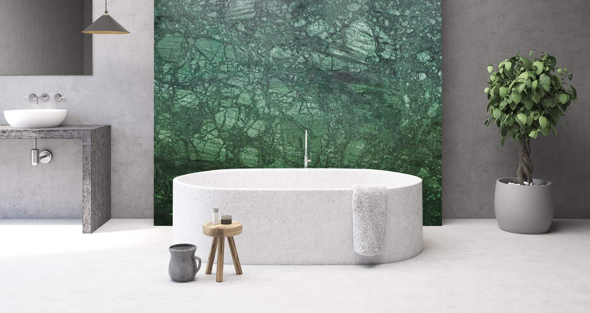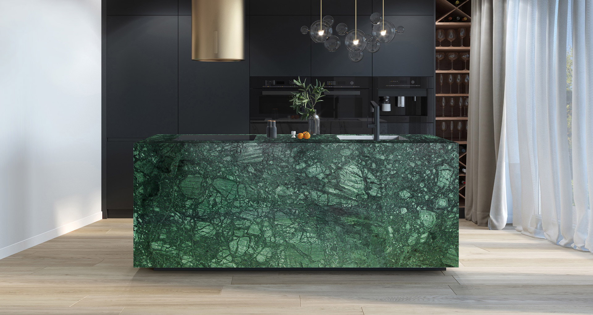 Marble with a green background with white intrusions and dark veins. Mainly quarried in India, only a small portion of this elegant material is mined in Guatemala, as its name suggests. Used above all for the decoration of bathrooms, kitchens and floors, Verde Guatemala is recommended in a glossy or smooth finish, thanks to its ability to reflect light and illuminate by reflecting the various shades of its original color.