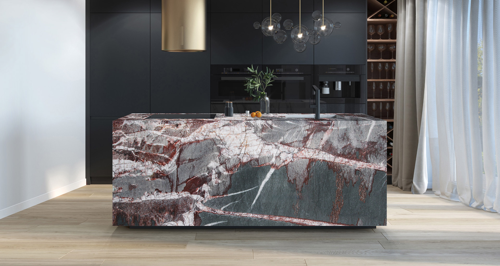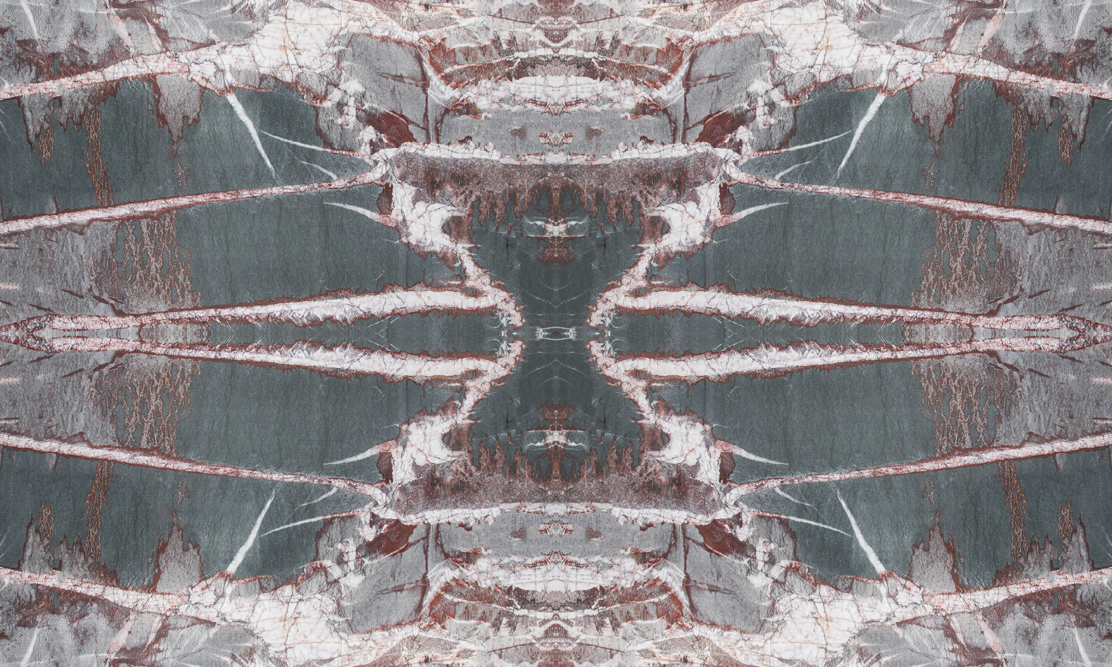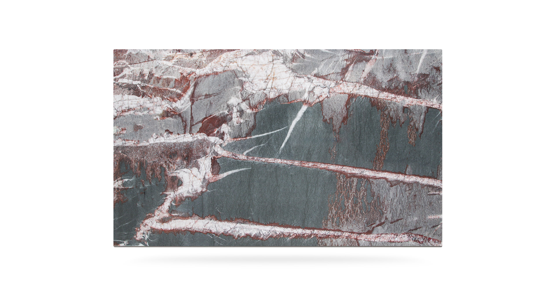 Brazilian quartzite with a deep impact, characterized by a mainly dark green background and white, red and brown veins. The irregular ramifications of these veins contribute to making any creation unique, from internal to external projects. Strongly recommended in polished or honed finish.