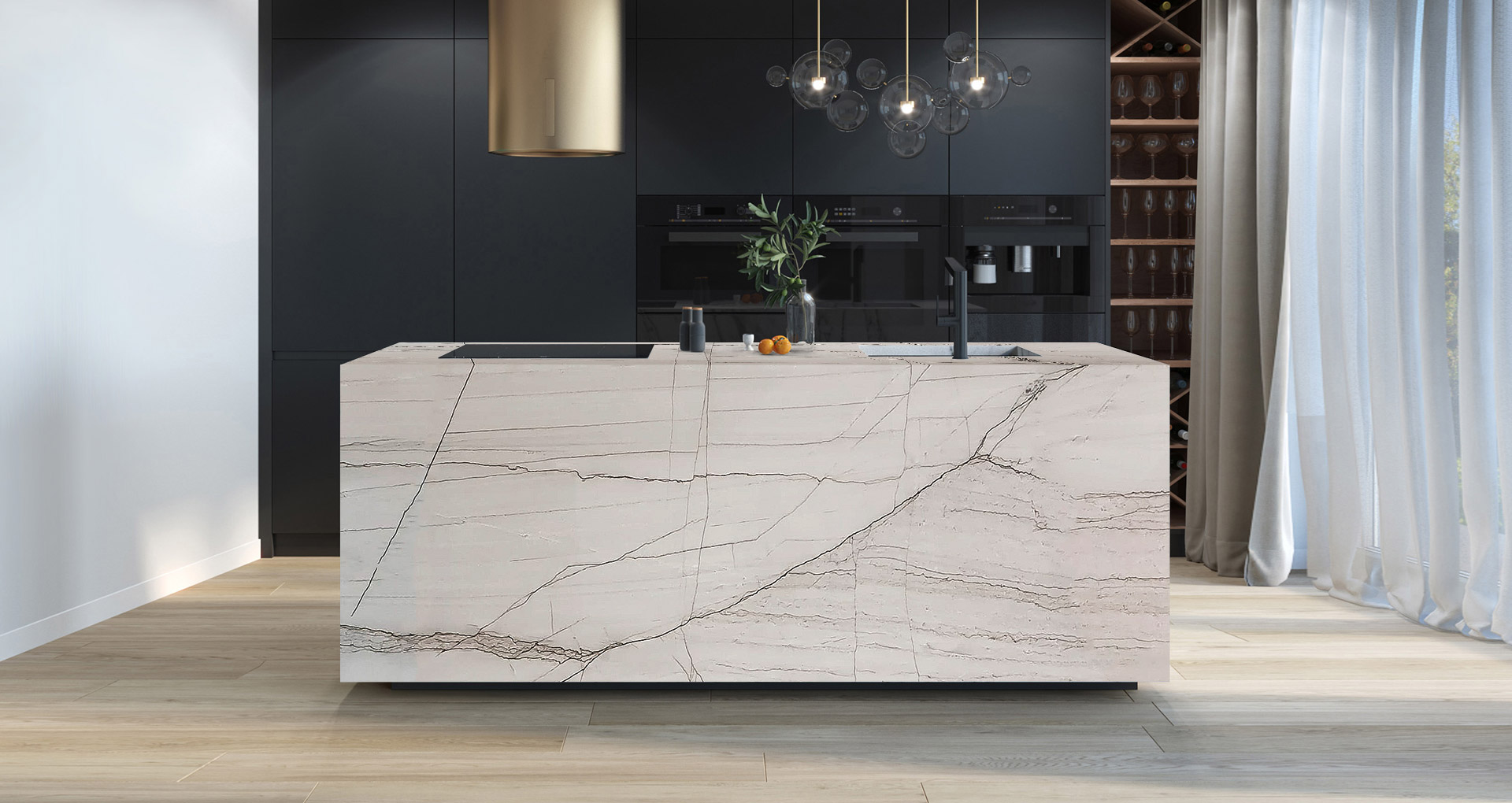 Very light and elegant quartzite from Brazil, which is characterized by its greyish-white background crossed by light dark veins. Belonging to the quartzite group, this natural metamorphic stone is particularly resistant to heat, trampling and rubbing. Ideal for large, bright environments, it is an excellent choice for anyone who wants exclusive furnishings.