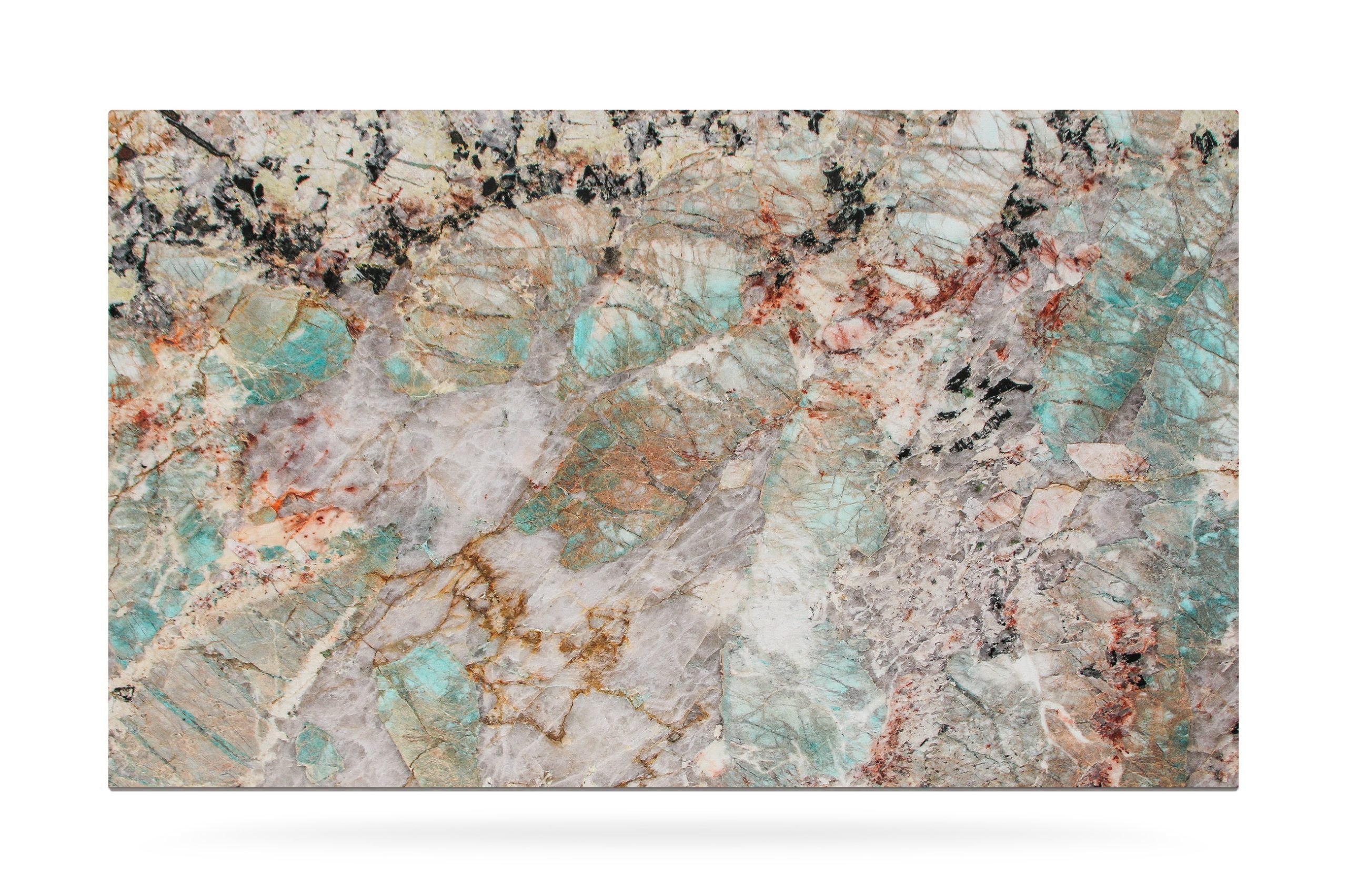 The main deposits of Amazonite are in Brazil, in regions where nature has preserved this mineral treasure over centuries. Marmi Orobici Graniti carefully selects the finest slabs, bringing them to Italy to be transformed into projects of extraordinary beauty