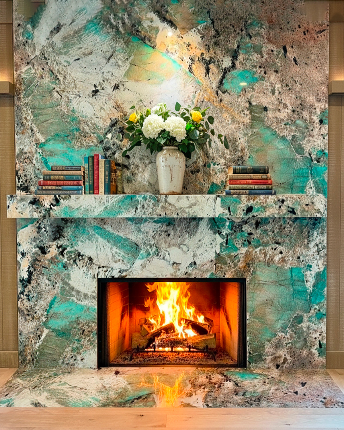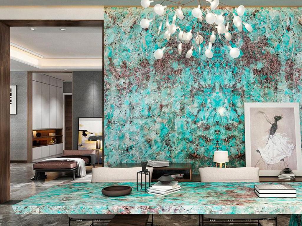 Architects and designers use it in luxury projects and contemporary environments, enhancing its dramatic look with polished or honed finishes. Renowned professionals like Zaha Hadid and Jean Nouvel have chosen Amazonite, appreciating its expressive power in iconic works and avant-garde installations.