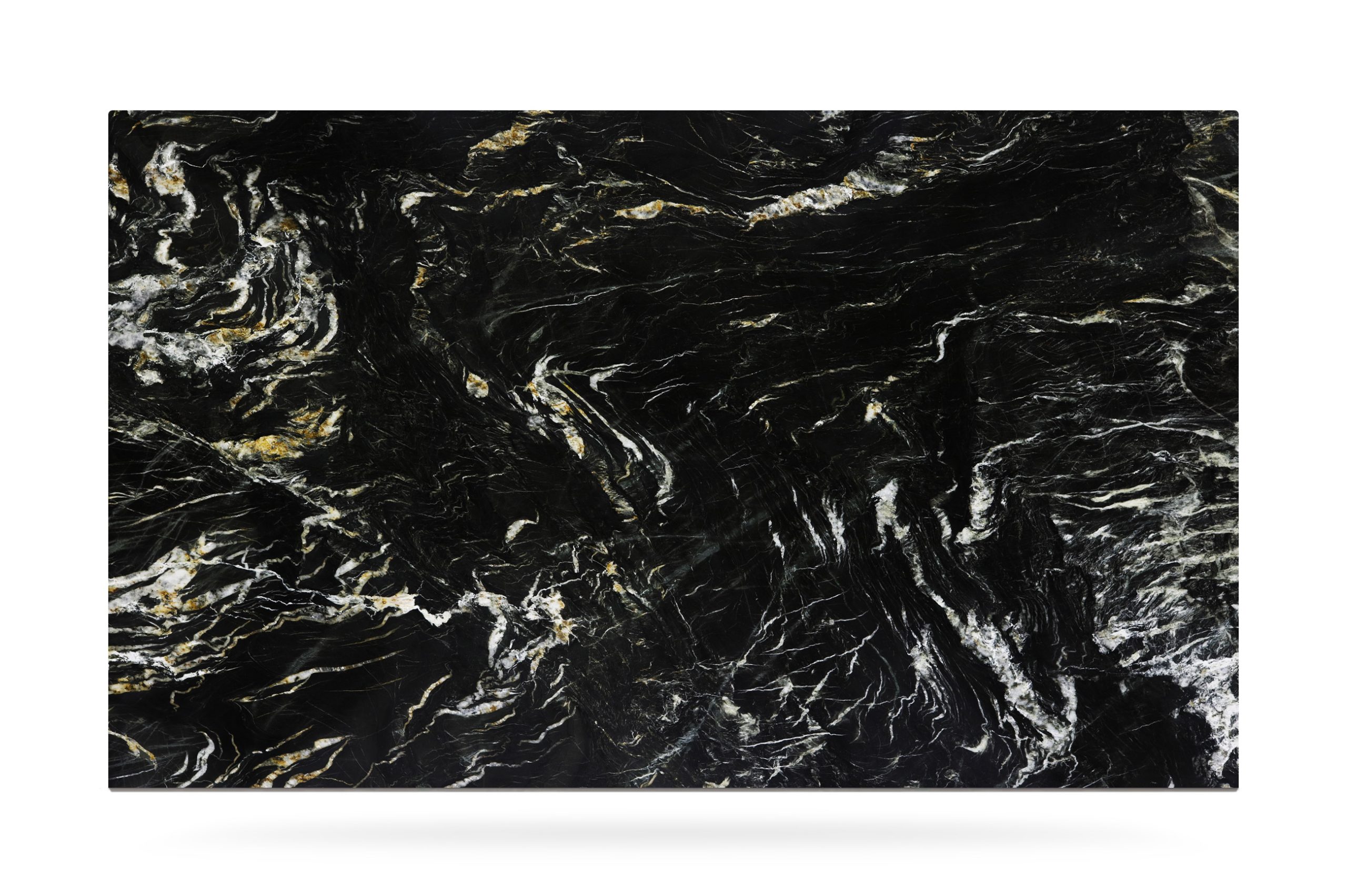 Belvedere quartzite is characterized by a deep and intense black background. Golden, white and grey veins crossing along the surface create unique and fascinating textures.
