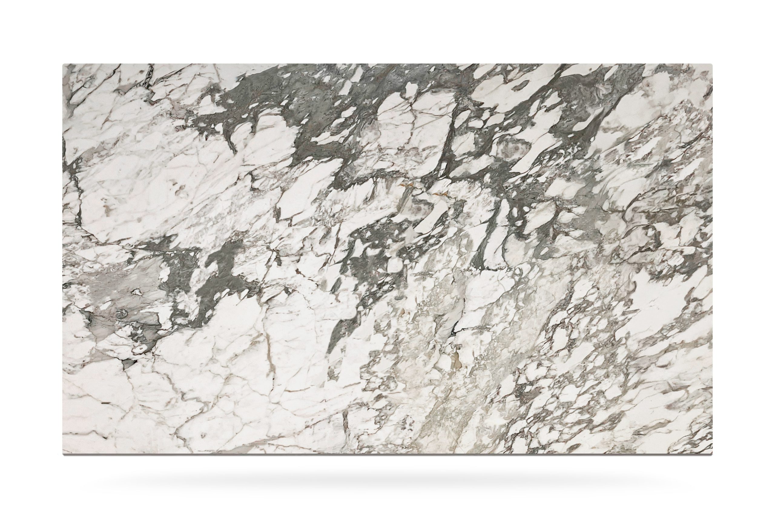 Breccia Capraia is an extraordinary Italian marble, very popular for its unique beauty and marked veins shading from purple to grey, and green on a milky white background. Its geological story began over 200 million years ago, when limestone sediments were deposited deep in the Tethys Sea (an ancient ocean from millions of years ago), later transformed by tectonic and metamorphic processes that gave rise to its distinctive structure and striking colours.