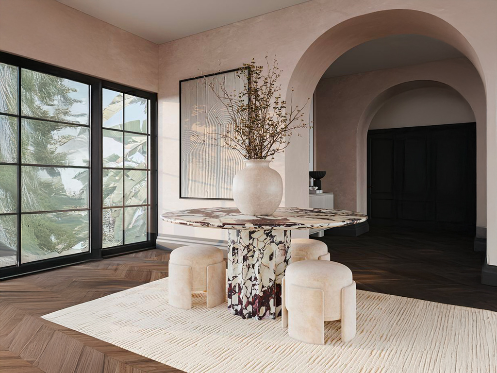 Calacatta Monet Viola is a material that not only satisfies functional needs but, like a work of art, enriches spaces with its intrinsic beauty and ancient history.