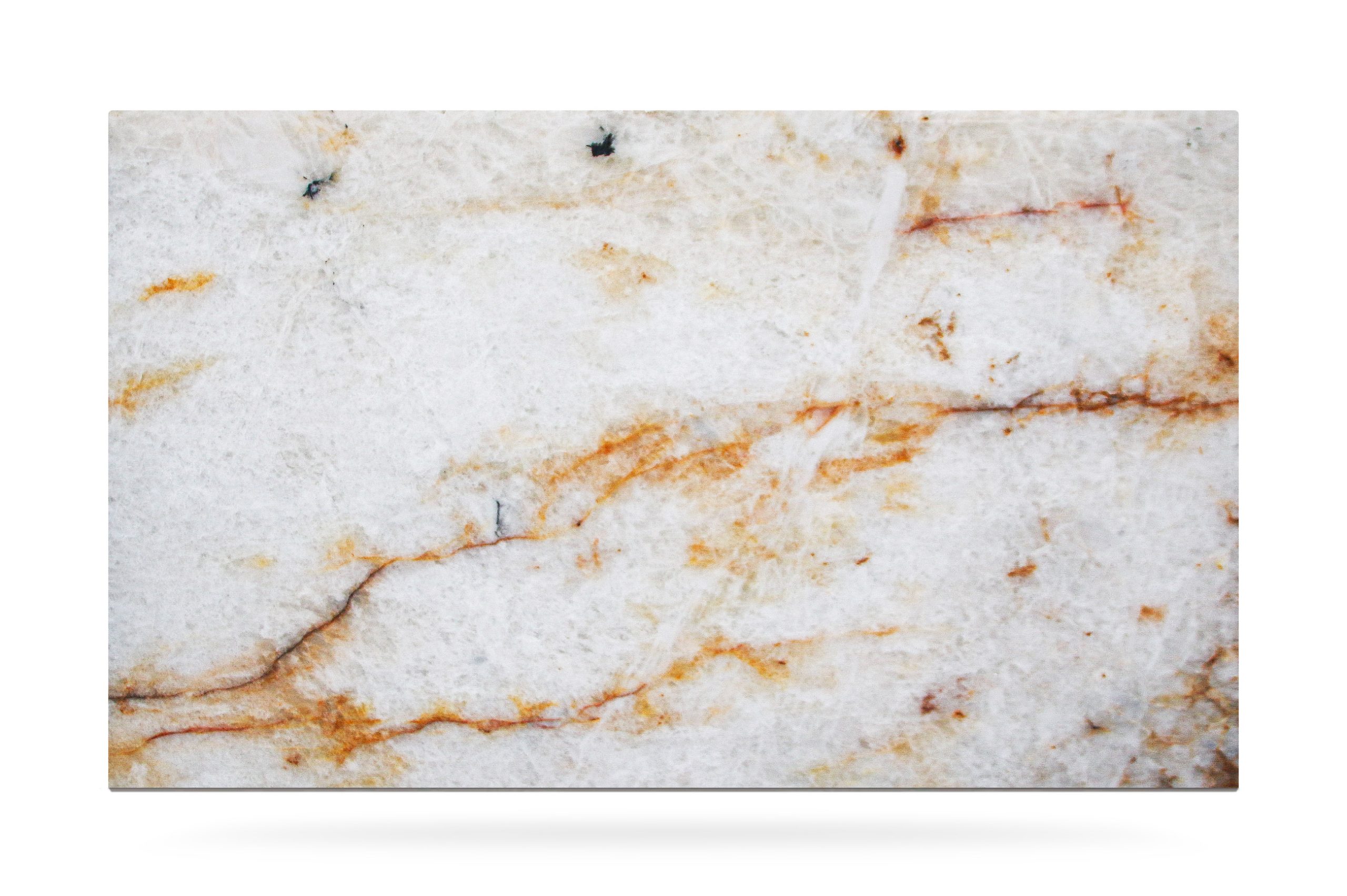 Very elegant Brazilian quartzite with a pearly white color and crossed by light brown quartz veins. Its transparency allows you to create backlit visual effects capable of animating interior design environments. Despite what you might think, the significant presence of quartz in its composition makes this material particularly resistant to pressure and corrosive agents.